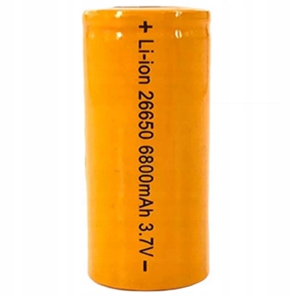 Akumulator 26650 Li-Ion 6800 mAh to wydajne ogniwo litowo-jonowe przeznaczone do urządzeń wymagających większej mocy i dłuższego czasu pracy. Dzięki większemu rozmiarowi w porównaniu do standardu 18650 oferuje wyższą pojemność, dlatego sprawdzi się w sprzęcie o większym zapotrzebowaniu na energię.