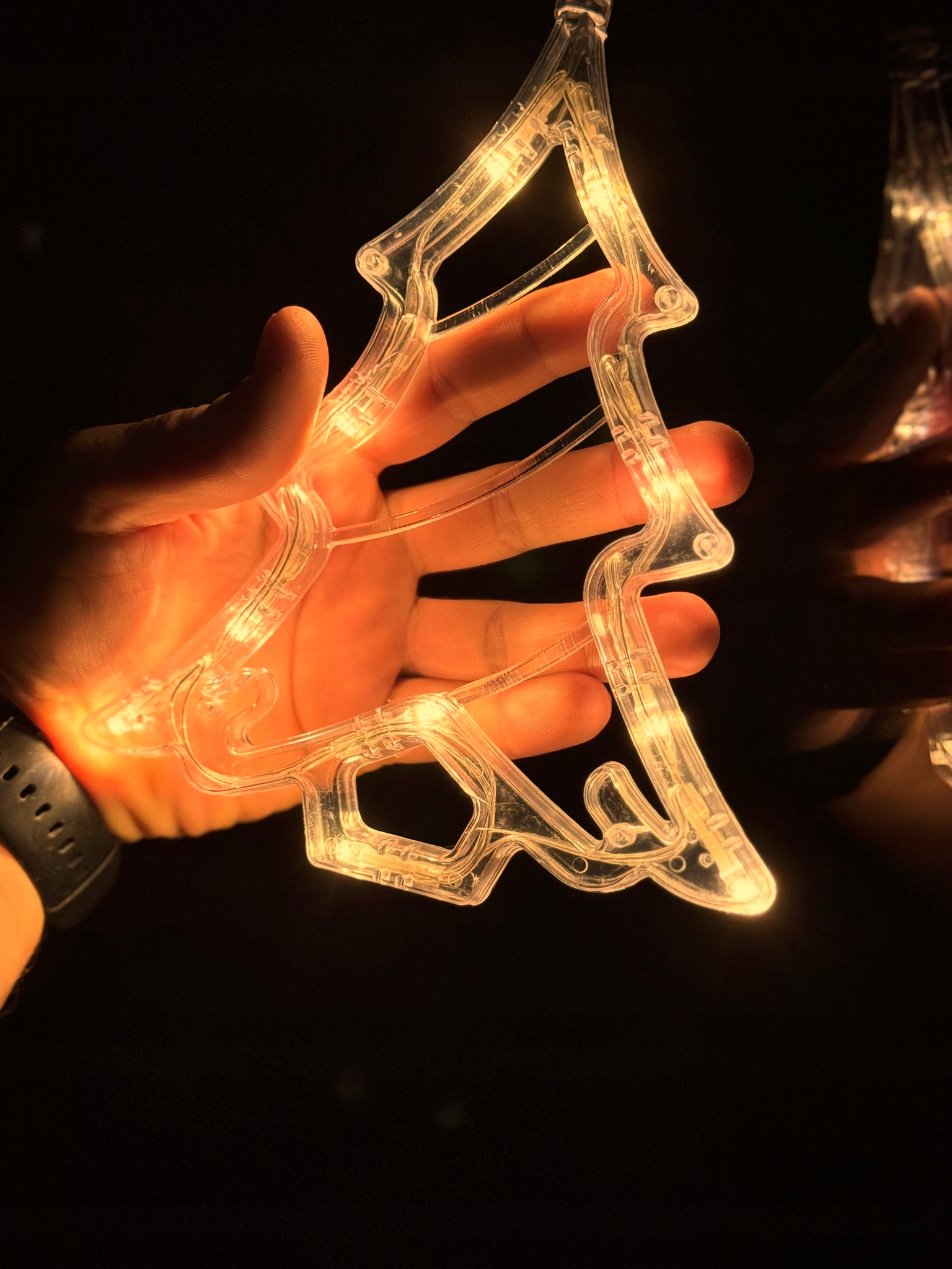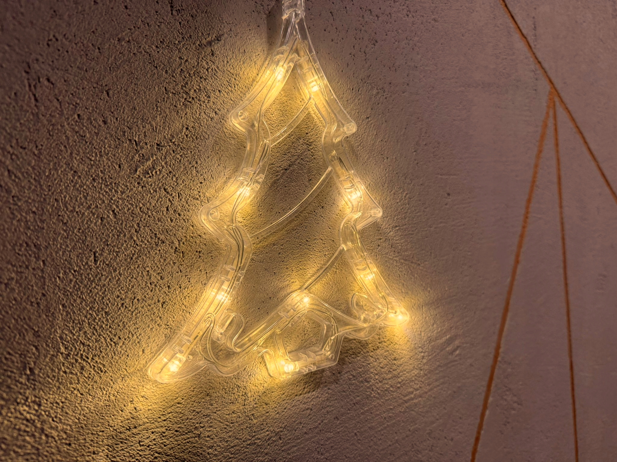 Ozdoba świeci ciepłym białym światłem, które jest delikatne i nierażące. Dzięki zasilaniu 3×AAA 1,5 V choinkę można zawiesić w dowolnym miejscu. Ponadto brak przewodów ułatwia montaż i poprawia estetykę. Baterie nie są dołączone do zestawu.