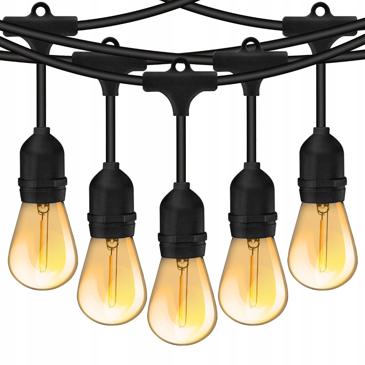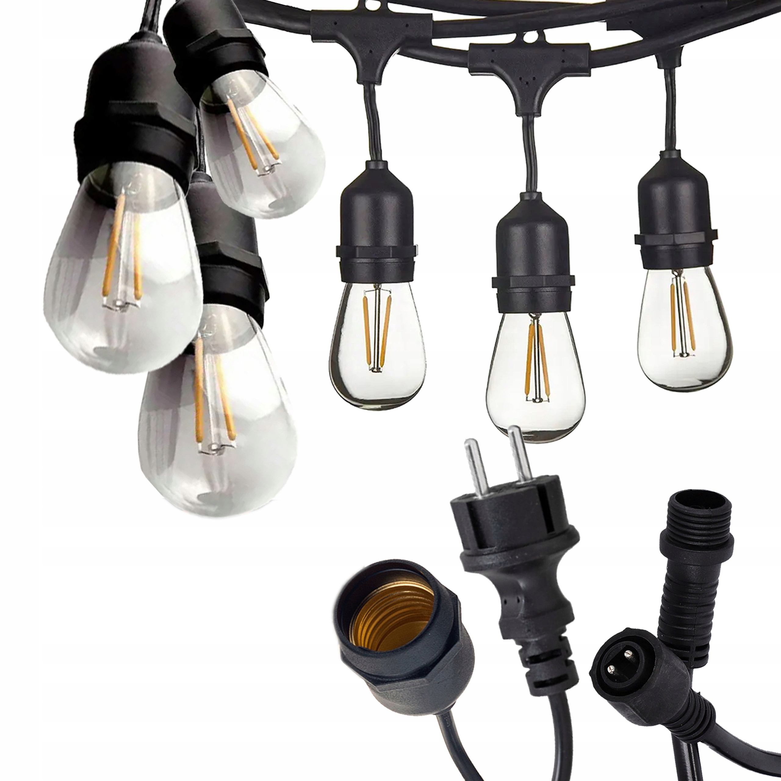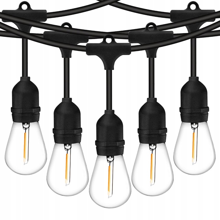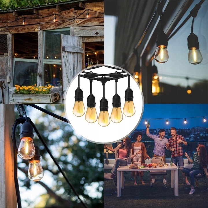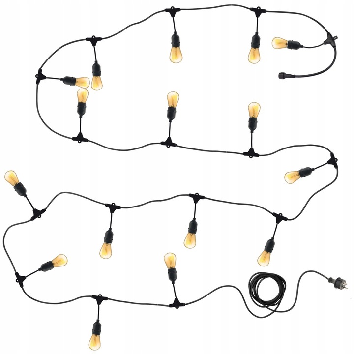 Girlanda posiada 20 oprawek E27, dlatego zapewnia intensywne i równomierne oświetlenie. Brak żarówek pozwala dobrać barwę światła, więc dopasujesz klimat do okazji. Jednocześnie standard E27 daje dużą uniwersalność, dlatego możesz stosować różne źródła światła.