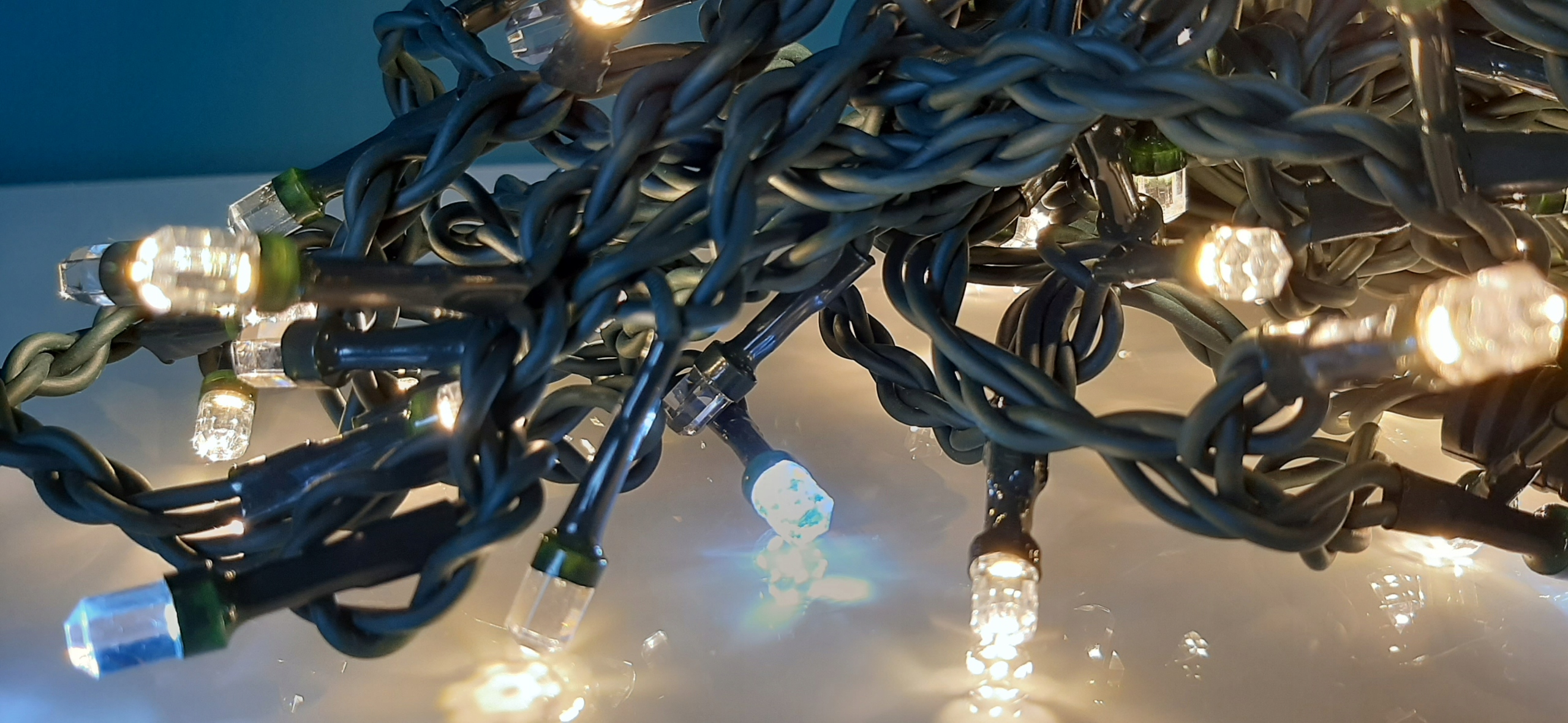 Lampki łączą ciepłe światło stałe z zimnym efektem flash. Dlatego instalacja tworzy dynamiczny oraz elegancki efekt świetlny.