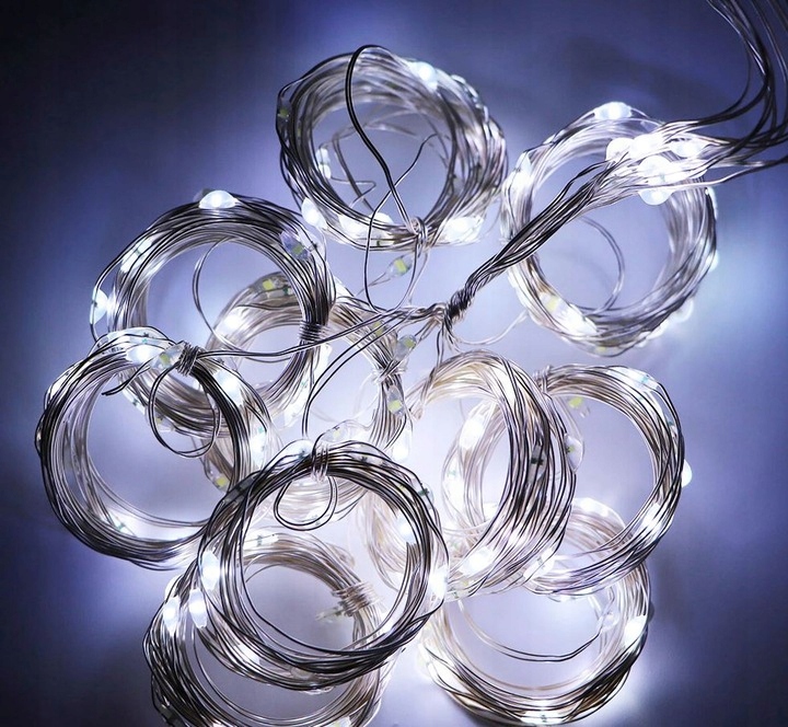 Kurtyna LED posiada 10 pionowych przewodów z mikro diodami LED. Dzięki temu tworzy efekt świetlnej ściany. Jednocześnie srebrny drucik pozostaje niemal niewidoczny.