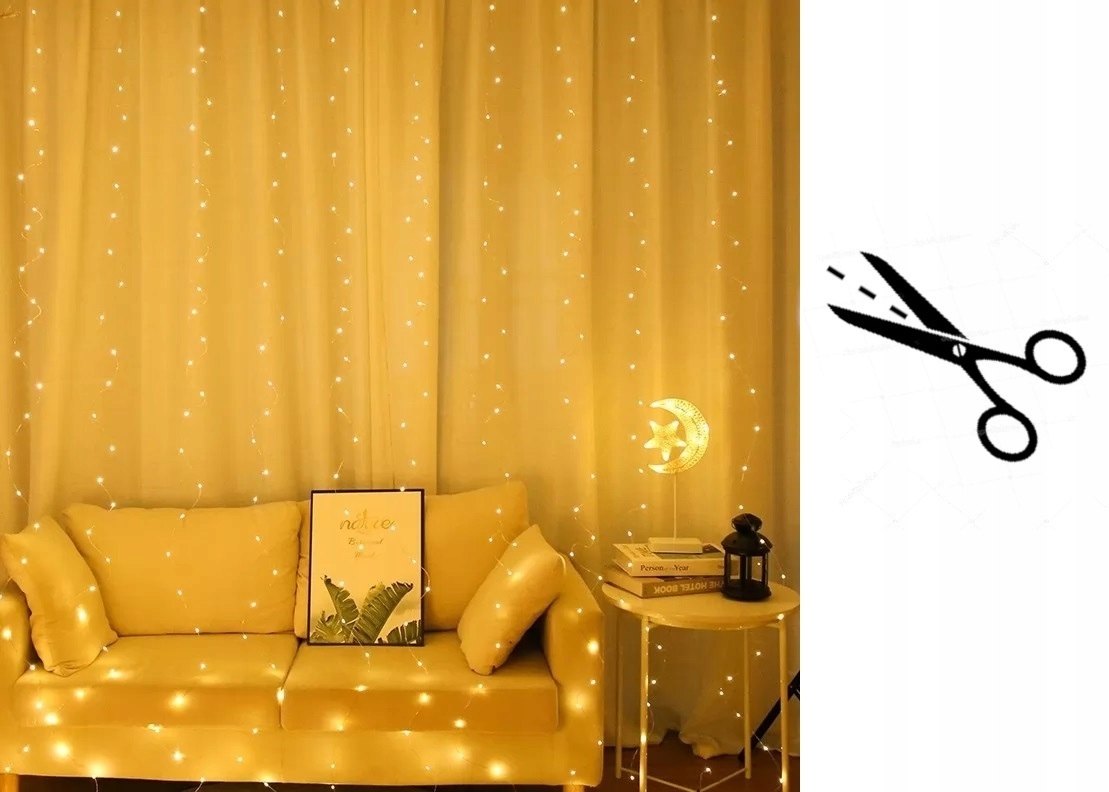 Duży rozmiar 3 × 3 m pozwala stworzyć efektowną dekorację świetlną. Dzięki temu kurtyna świetnie sprawdza się na ścianach, oknach oraz balkonach.