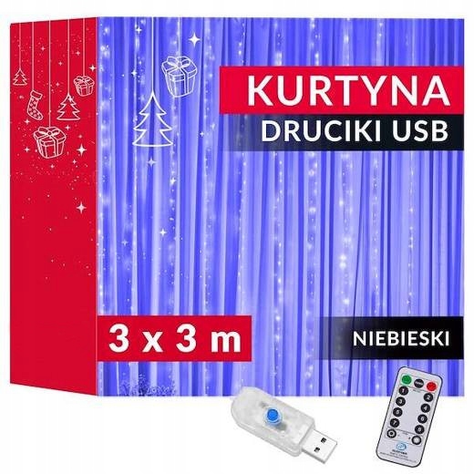KURTYNA SOPLE 300 LED DRUCIK 3X3 NIEBIESKA 300L