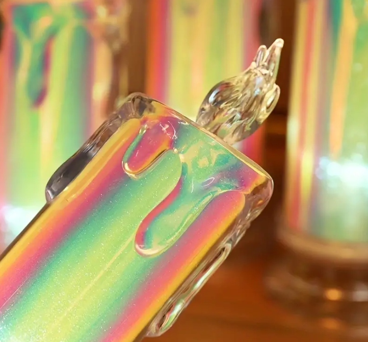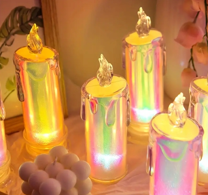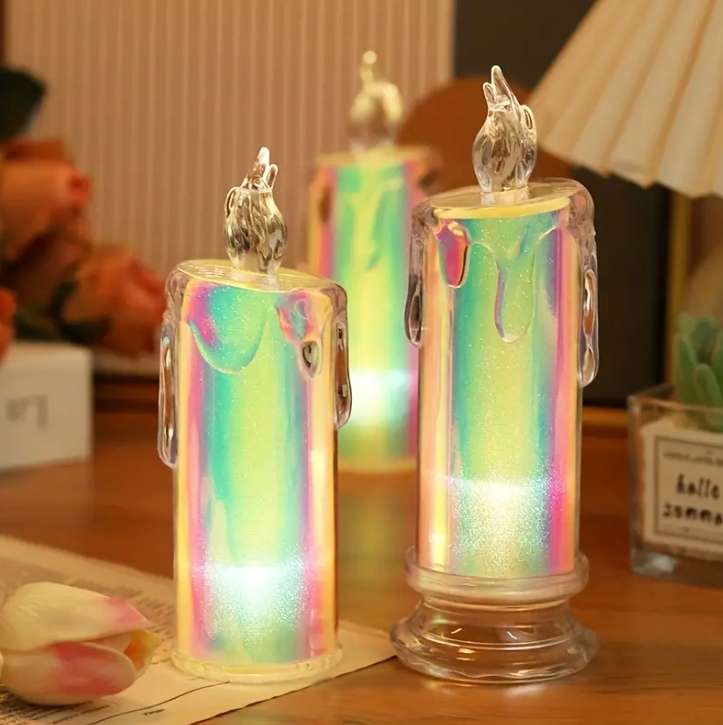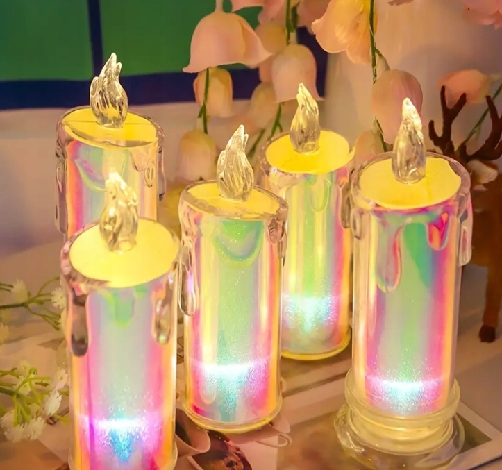 Świeczka LED została zaprojektowana jako dekoracja o wysokiej estetyce. Dzięki holograficznej powierzchni odbija światło, więc tworzy ciekawy efekt wizualny. To rozwiązanie wyróżnia ją na tle standardowych świec LED.