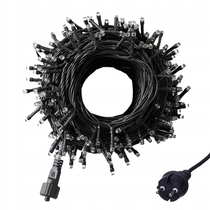 Lampki wyposażono w gruby, gumowy przewód w zielonej izolacji. Jest on odporny na mróz, wilgoć oraz zginanie, dlatego sprawdzi się w warunkach zewnętrznych. Zielony kolor przewodu dobrze maskuje się wśród gałęzi.