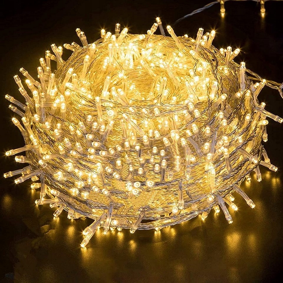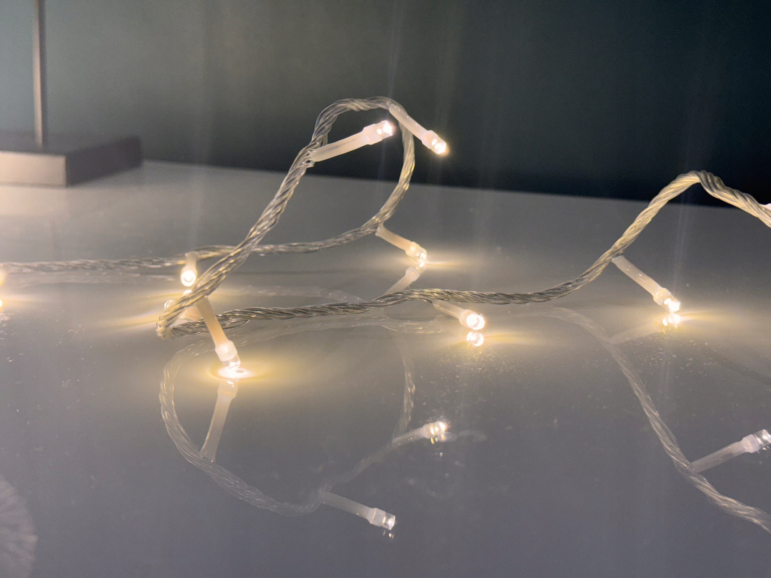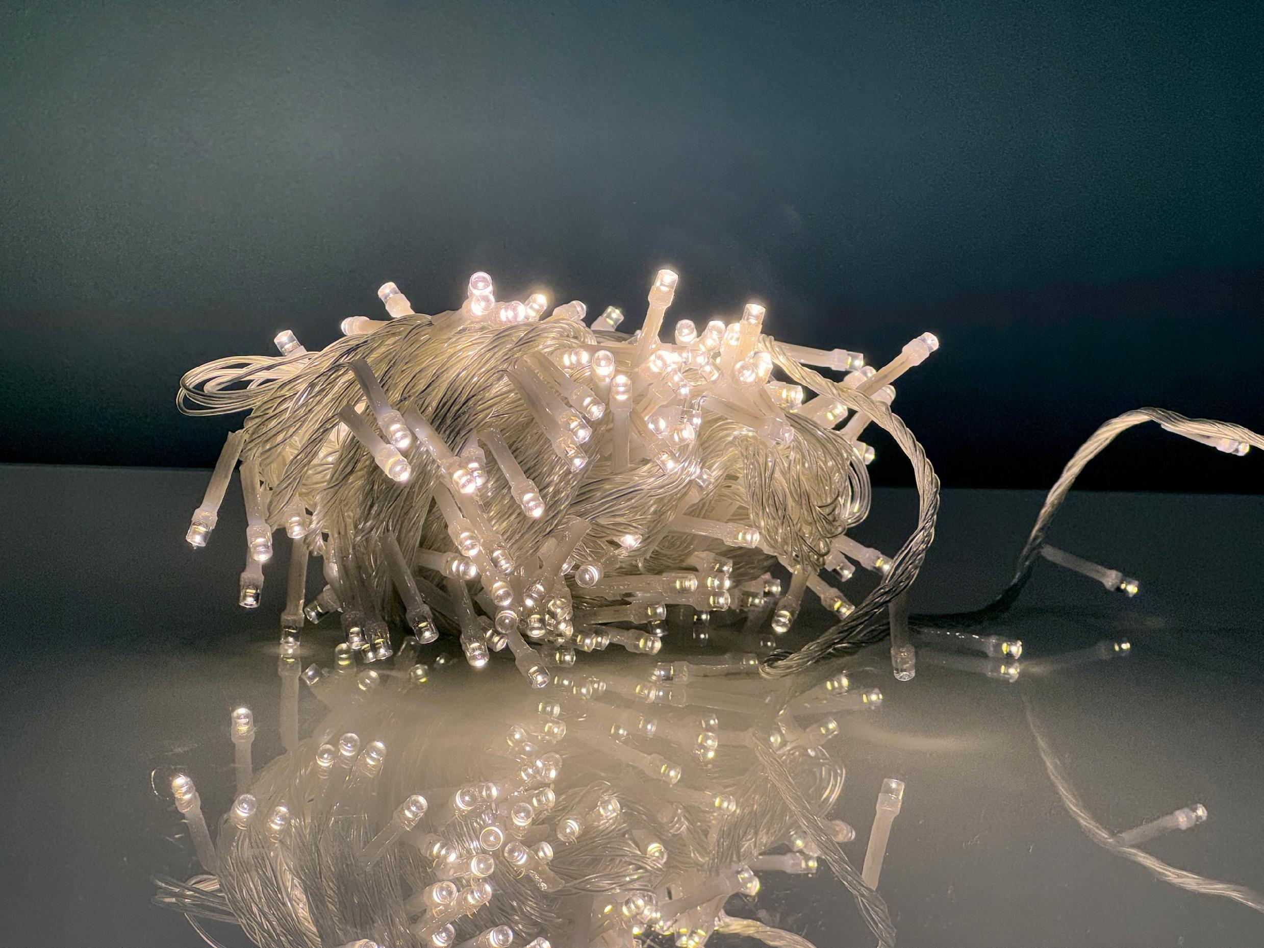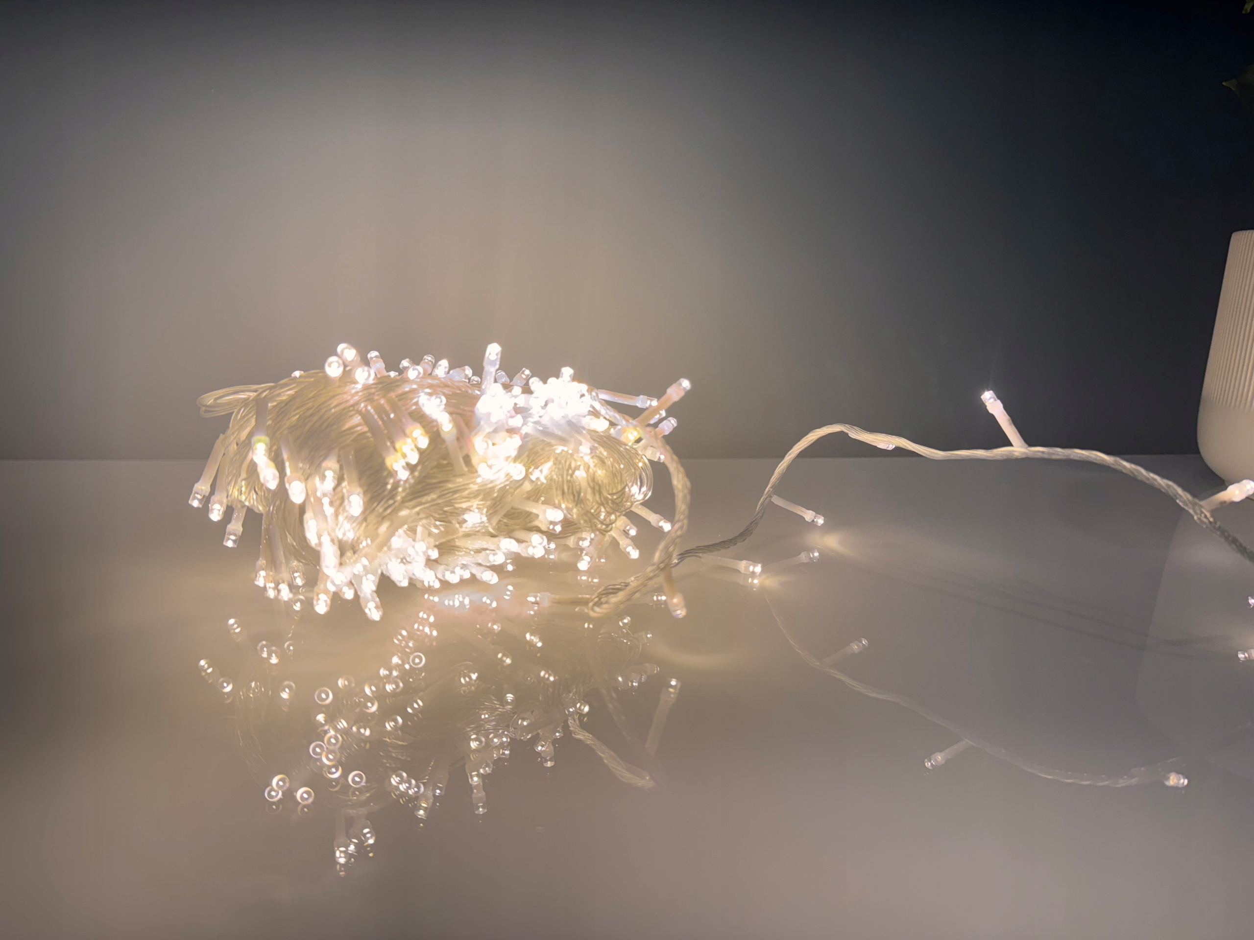 Lampki choinkowe 300 LED na transparentnym przewodzie to efektowna dekoracja do dużych przestrzeni. Emitują ciepłe białe światło, dlatego tworzą przytulny i elegancki klimat. Transparentny kabel wtapia się w otoczenie, więc widoczny pozostaje tylko efekt świetlny. Dzięki temu aranżacja wygląda nowocześnie i estetycznie.