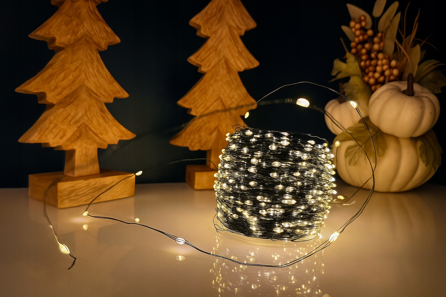 Lampki choinkowe na druciku pasują do wielu aranżacji. Dlatego można je stosować sezonowo lub całorocznie.