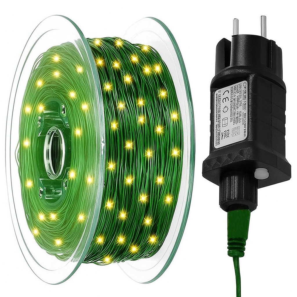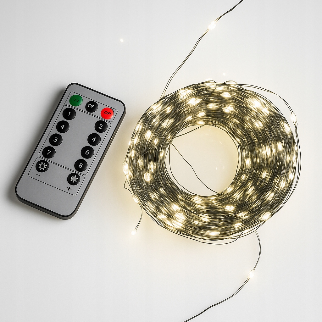Lampki Choinkowe 500 LED 50 m Ciepły Biały Pilot Zielony Drut
