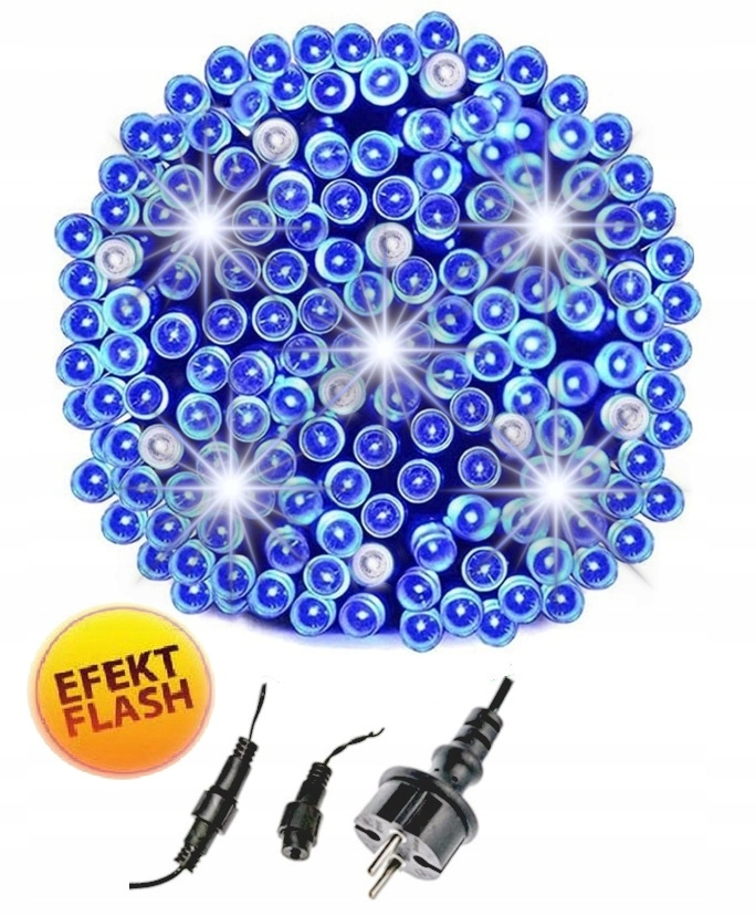 Lampki LED 500 Niebieskie Flash Choinkowe Zewnętrzne