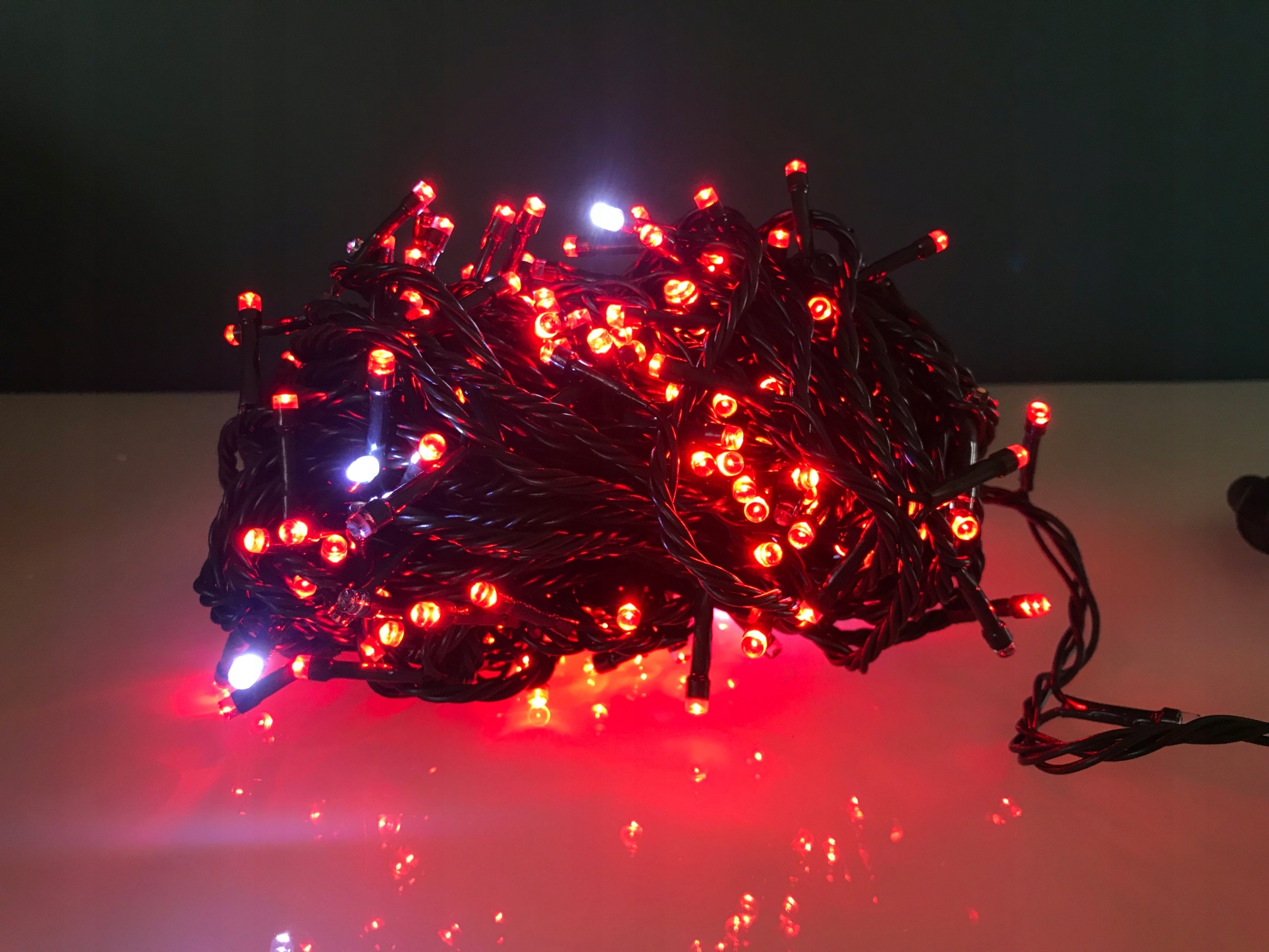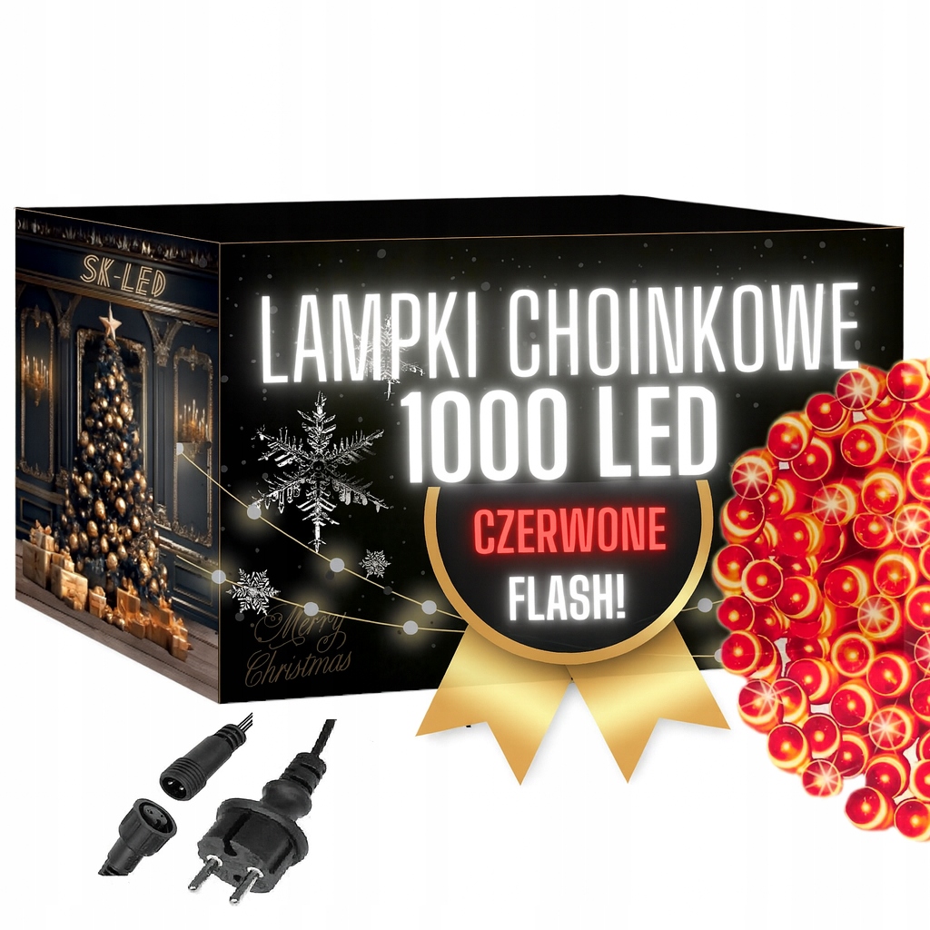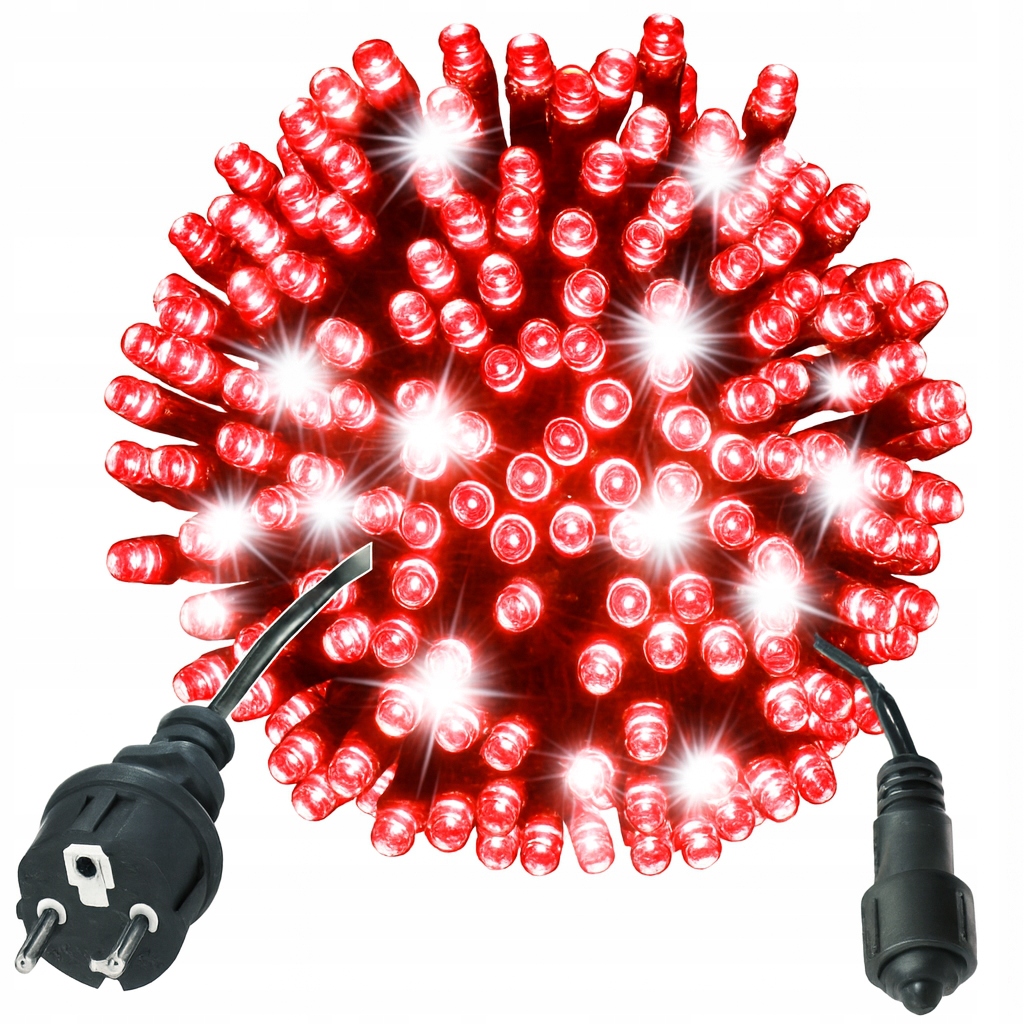 Lampki choinkowe LED 1000 czerwone Flash 72 m IP44 wodoodporne to bardzo długi i efektowny zestaw świąteczny. Dzięki długości aż 72 metrów bez trudu udekorujesz dużą choinkę, elewację lub ogród. Co więcej, klasa szczelności IP44 pozwala używać lampek zarówno wewnątrz, jak i na zewnątrz.