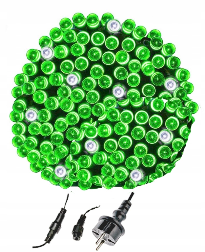 Gruby, zielony przewód jest elastyczny, więc łatwo dopasujesz go do gałęzi choinki lub balustrady. Dodatkowo hermetyczne złącze 2-pin umożliwia łączenie kilku kompletów w jeden dłuższy ciąg. W rezultacie możesz stworzyć spójną iluminację na całej posesji.