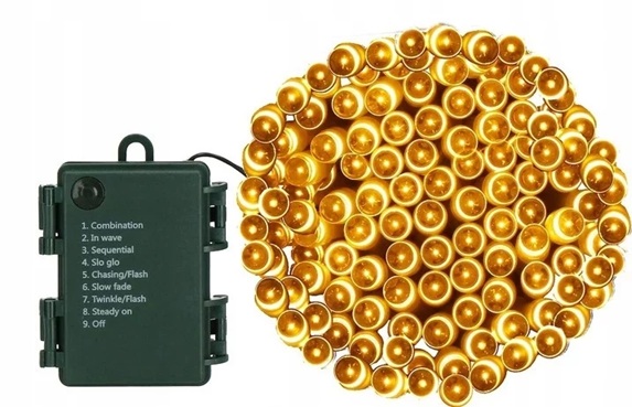 Zastosowano diody LED w barwie białej ciepłej, dzięki czemu dekoracja wygląda naturalnie i elegancko. Lampki posiadają 8 trybów świecenia, więc łatwo dopasujesz efekt do nastroju.
