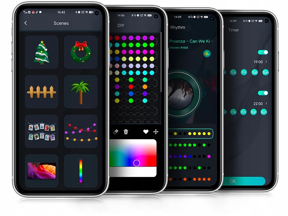 ✔️ Sterowanie telefonem – aplikacja Android/iOS pozwala zmieniać kolory, animacje i jasność.