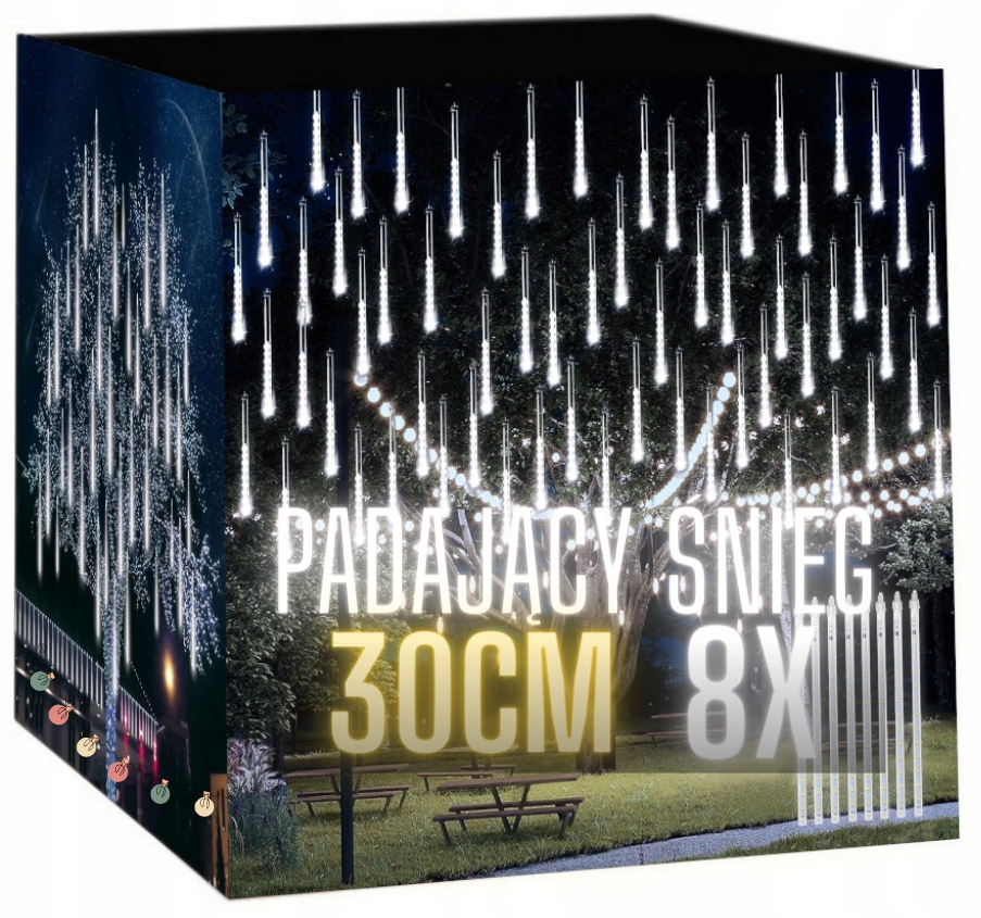 Lampki Sople LED 30 cm Białe Zimne Meteoryty Padający Śnieg
