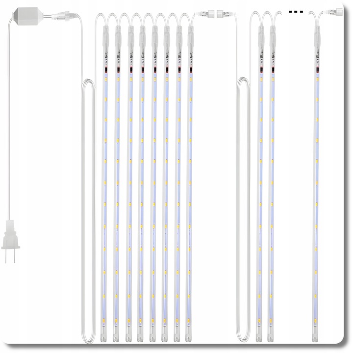 Zestaw składa się z 8 tub LED o długości 30 cm każda. Każdy sopel zamontowany jest na mocnym, przezroczystym przewodzie, dlatego instalacja wygląda estetycznie. Dodatkowo hermetyczne złącza pozwalają łączyć kilka kompletów w jedną większą iluminację. Dzięki temu możesz łatwo dopasować długość dekoracji do swojej przestrzeni.