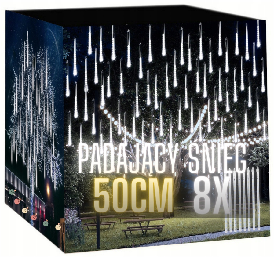 Lampki Sople LED 50 cm Białe Zimne Meteoryty Padający Śnieg