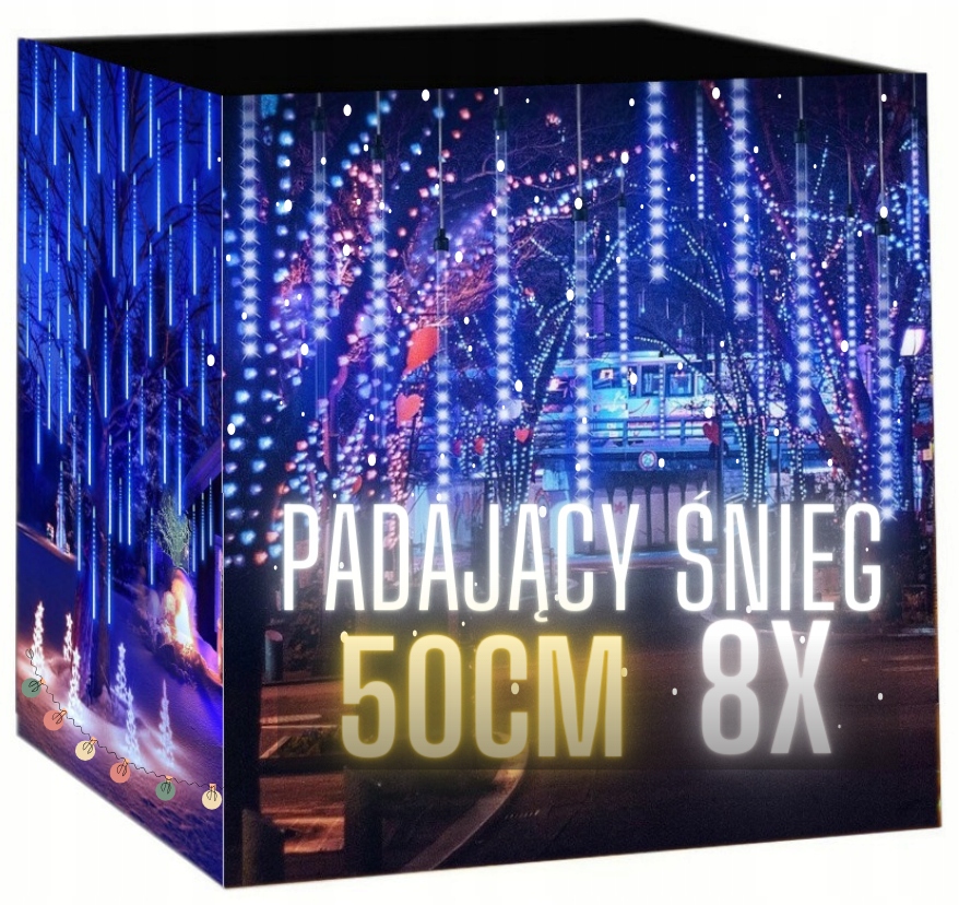 Zestaw składa się z 8 tub LED o długości 50 cm każda. Każdy sopel zamontowany jest na mocnym, przezroczystym przewodzie, dlatego instalacja wygląda estetycznie. Dodatkowo hermetyczne złącza umożliwiają łączenie wielu kompletów, a więc możesz stworzyć długą i spójną iluminację.