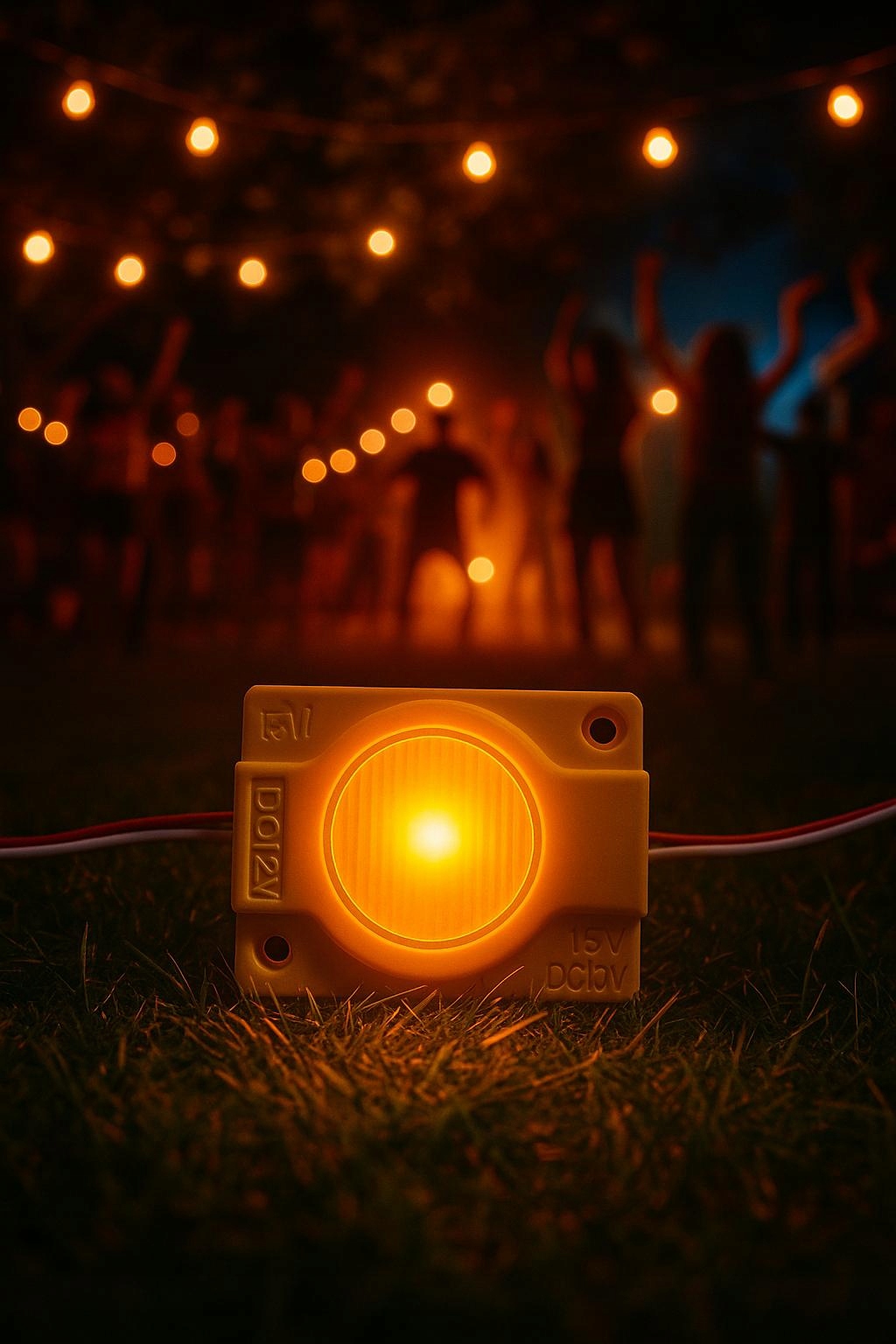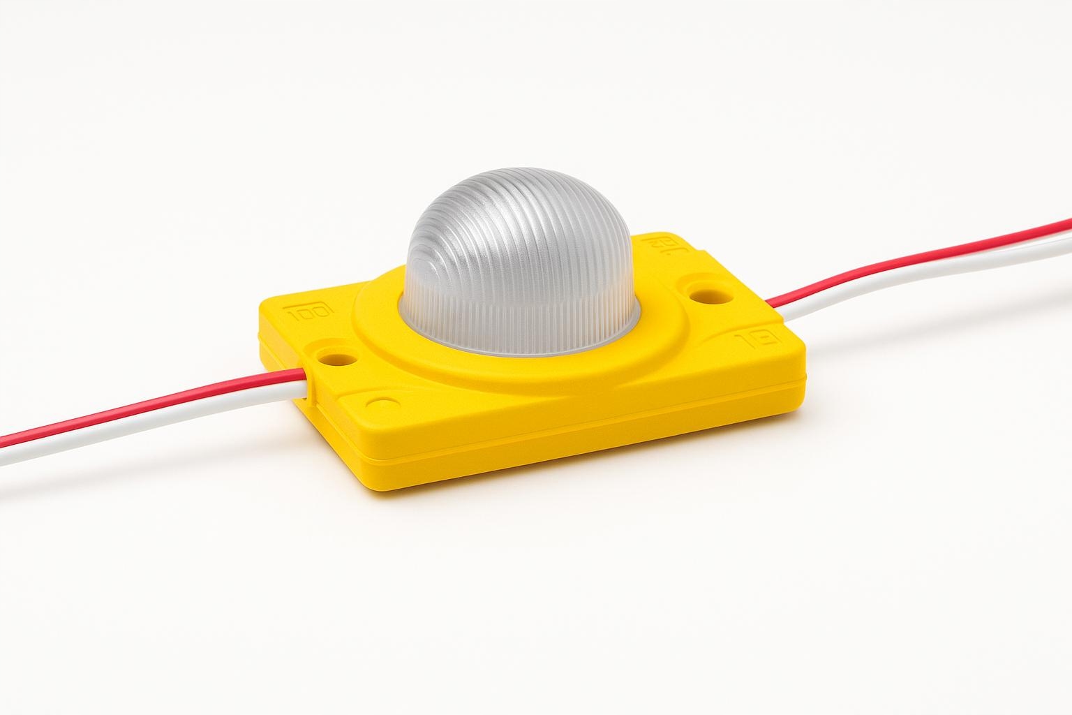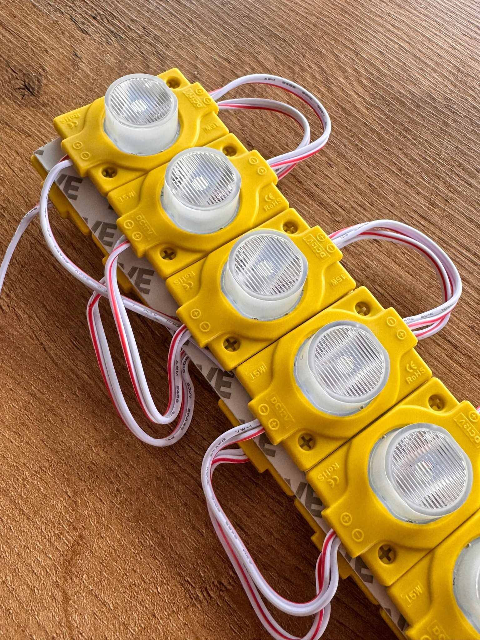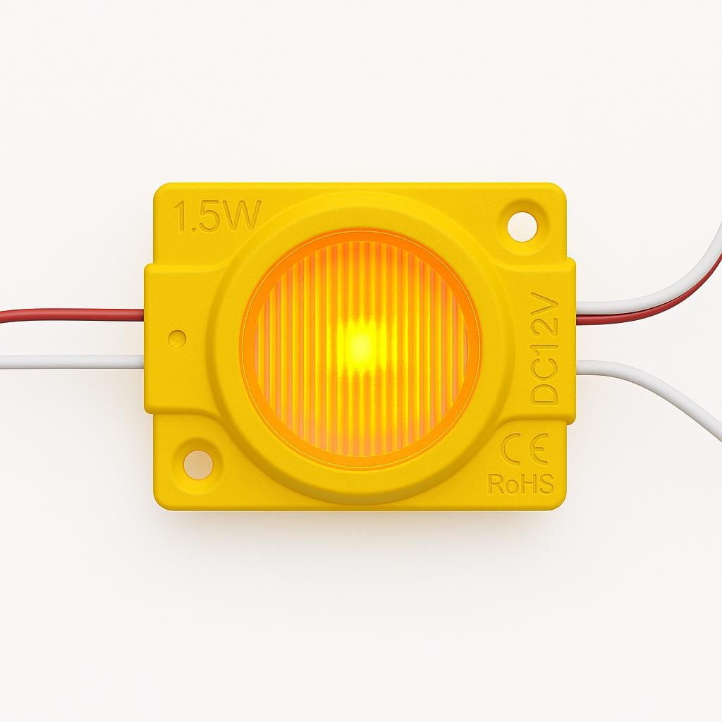 Moduł LED SMD 12V 1,5W IP65 żółto-pomarańczowy to kompaktowe i energooszczędne źródło światła do instalacji dekoracyjnych oraz reklamowych. Intensywna barwa światła przyciąga wzrok, dlatego moduł świetnie sprawdza się w kasetonach, napisach oraz elementach dekoracyjnych.