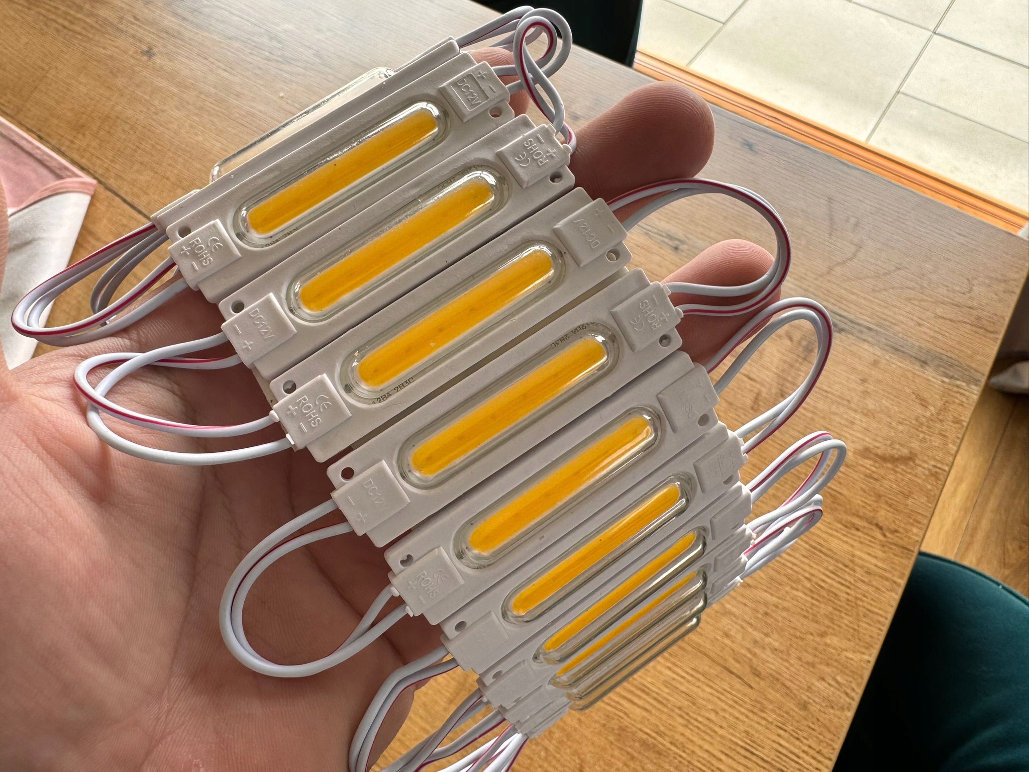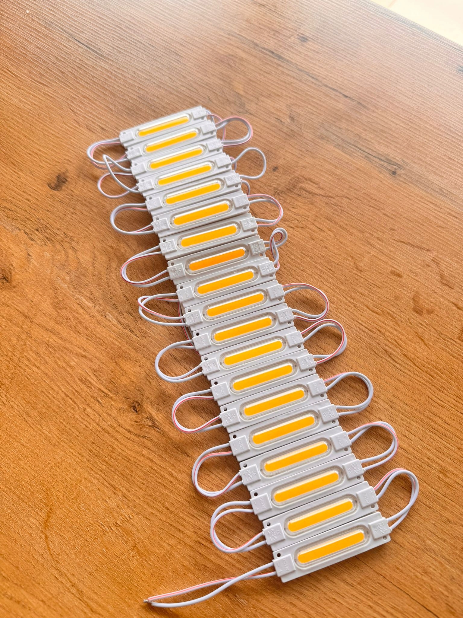 Moduły można łączyć przez lutowanie przewodów, dlatego łatwo zbudujesz dłuższe instalacje świetlne. Dzięki temu rozwiązanie sprawdza się w kasetonach reklamowych, literach LED oraz dekoracjach architektonicznych.