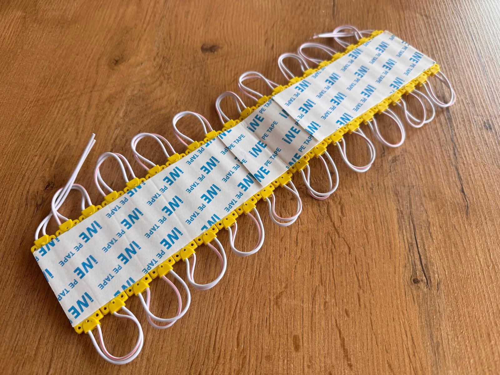 Moduły można łączyć przez lutowanie przewodów, dlatego łatwo stworzysz dłuższe instalacje świetlne. Dzięki temu produkt sprawdza się w kasetonach reklamowych, dekoracjach wnętrz oraz projektach DIY.