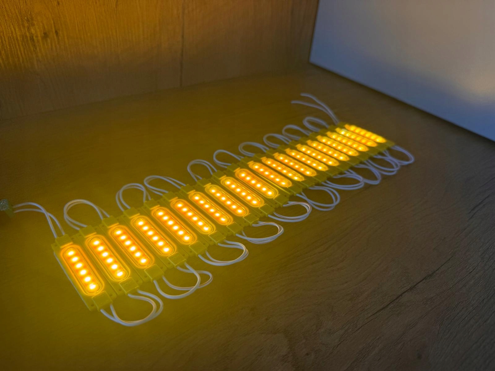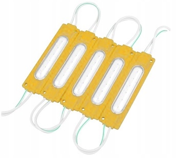 Barwa żółta tworzy wyrazisty efekt dekoracyjny. Dlatego moduły świetnie sprawdzają się w kasetonach, witrynach oraz instalacjach świetlnych. Ponadto zasilanie 12V DC zwiększa bezpieczeństwo całej instalacji LED.
