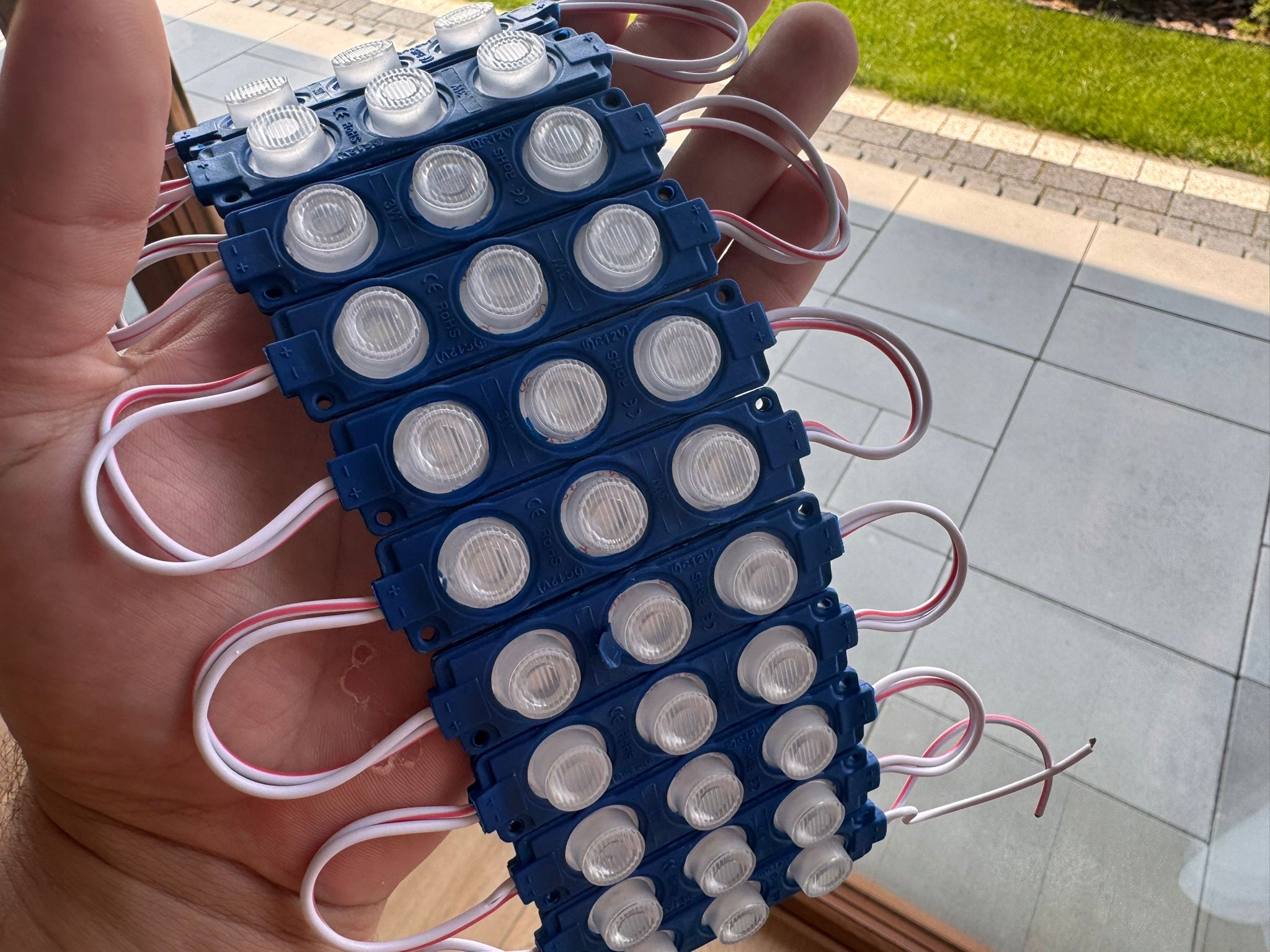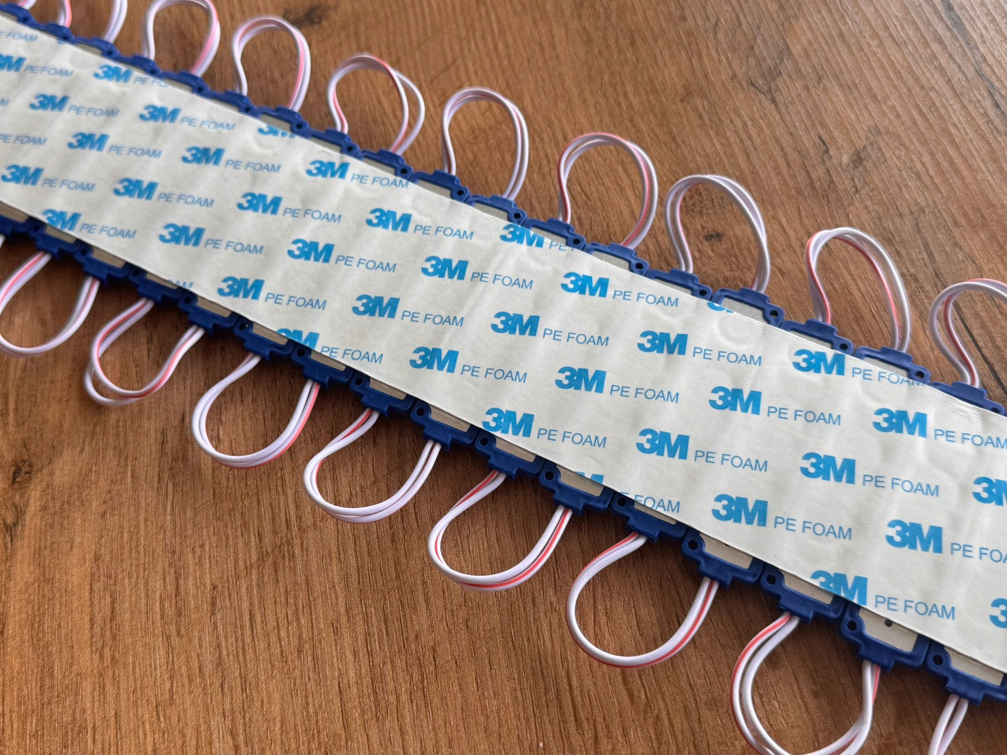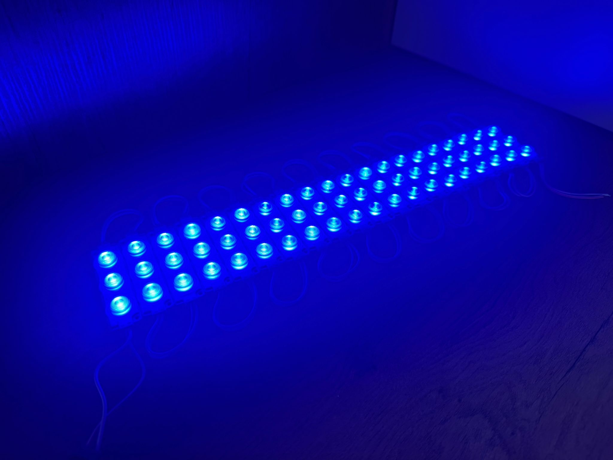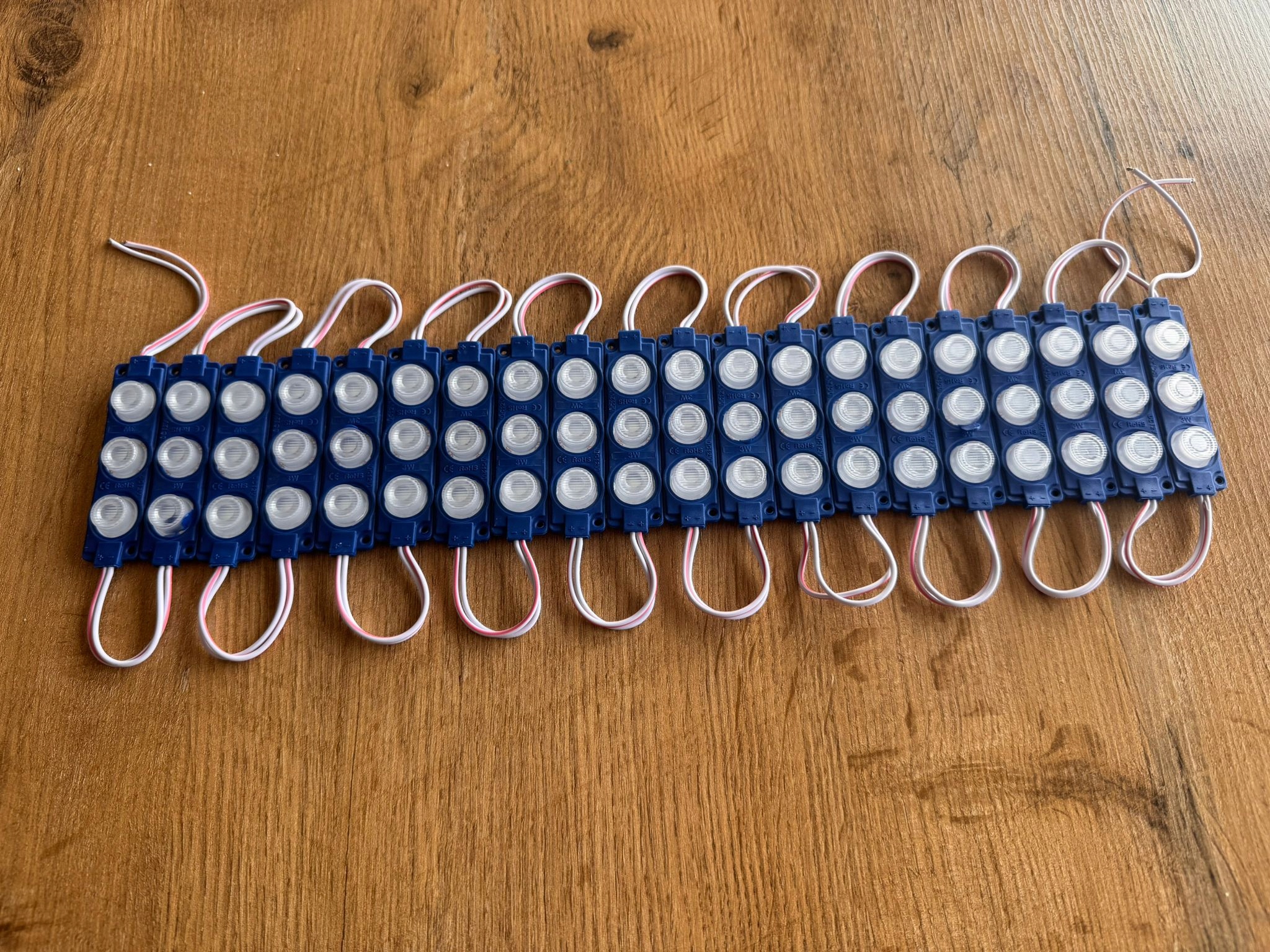 Moduły można łączyć przez lutowanie przewodów, dlatego łatwo zbudujesz dłuższe linie świetlne. Dzięki temu rozwiązanie sprawdza się w kasetonach reklamowych, literach LED oraz projektach DIY.