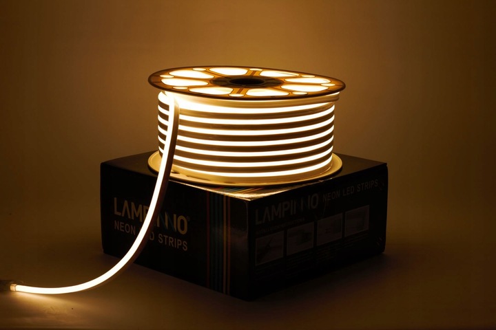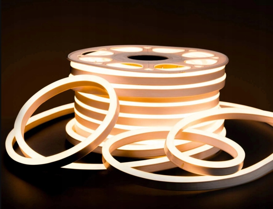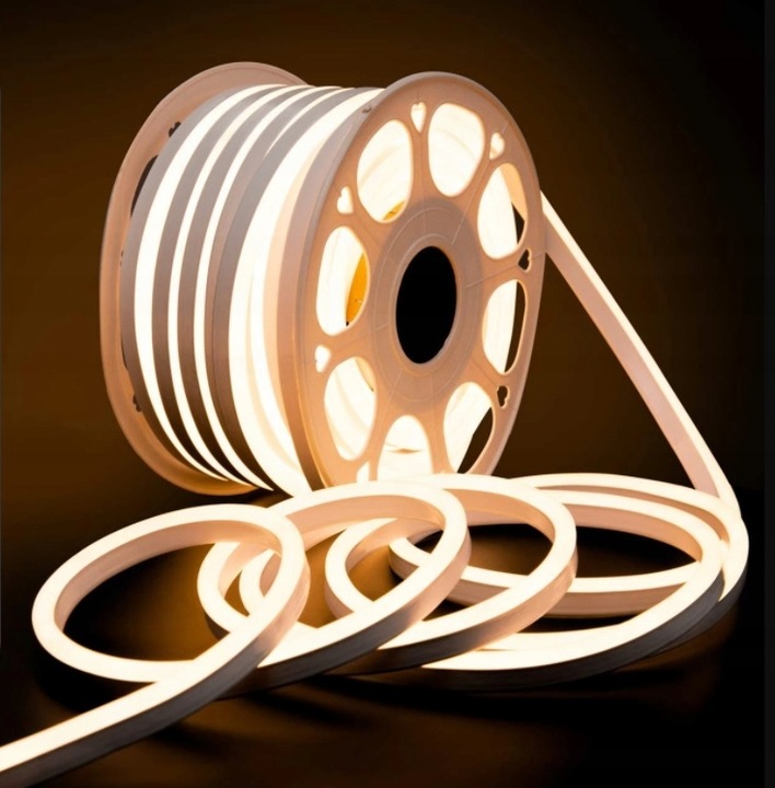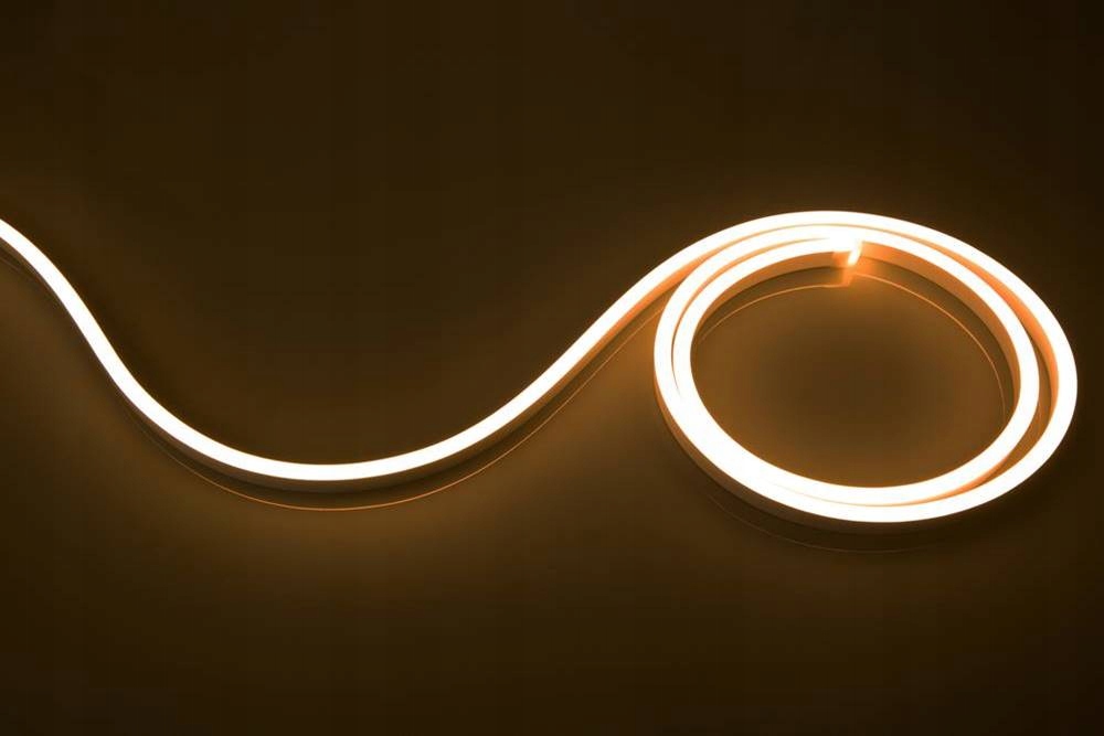 Neon Flex LED 230V jednostronny 8W mb w barwie białej ciepłej to trwałe i elastyczne oświetlenie w wodoodpornym pancerzu IP67. Dzięki zasilaniu bezpośrednio z sieci 230V montaż jest prosty, a instalacja szybka. Co więcej, jednolita linia światła na całej długości zapewnia estetyczny i profesjonalny efekt.