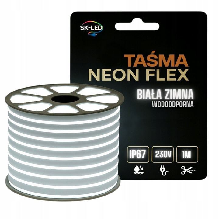 Kluczowe cechy Neon Flex LED 230V jednostronny 8W/mb biały zimny IP67