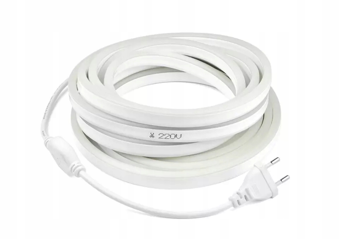 Neon Flex LED 230V jednostronny 8W/mb biały zimny IP67 to trwałe i elastyczne oświetlenie, które łączy estetykę z wytrzymałością. Dzięki zasilaniu bezpośrednio z sieci 230V montaż jest prostszy, a więc instalacja przebiega szybciej i bez zbędnych komplikacji. Co istotne, jednolita linia światła eliminuje widoczne punkty LED, dlatego efekt końcowy jest czysty i profesjonalny.