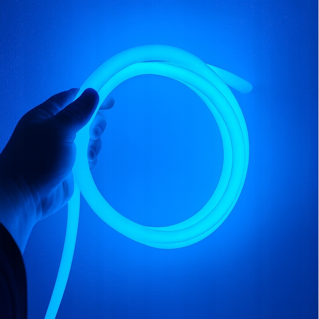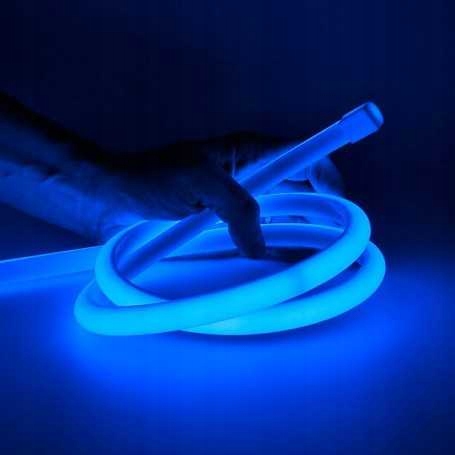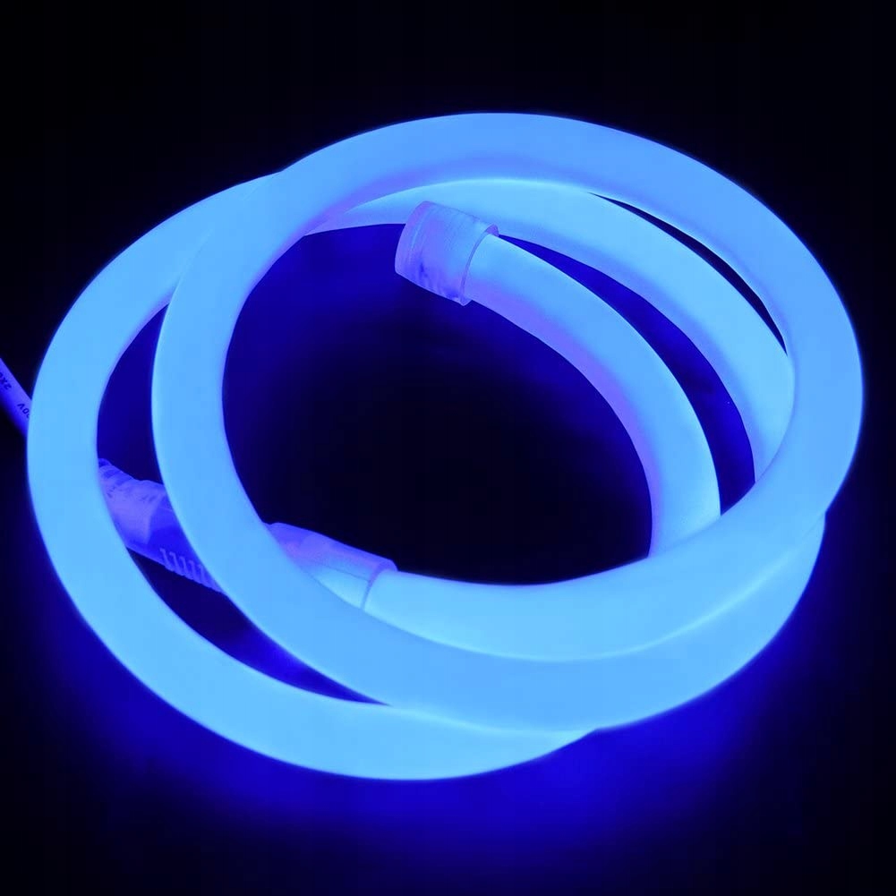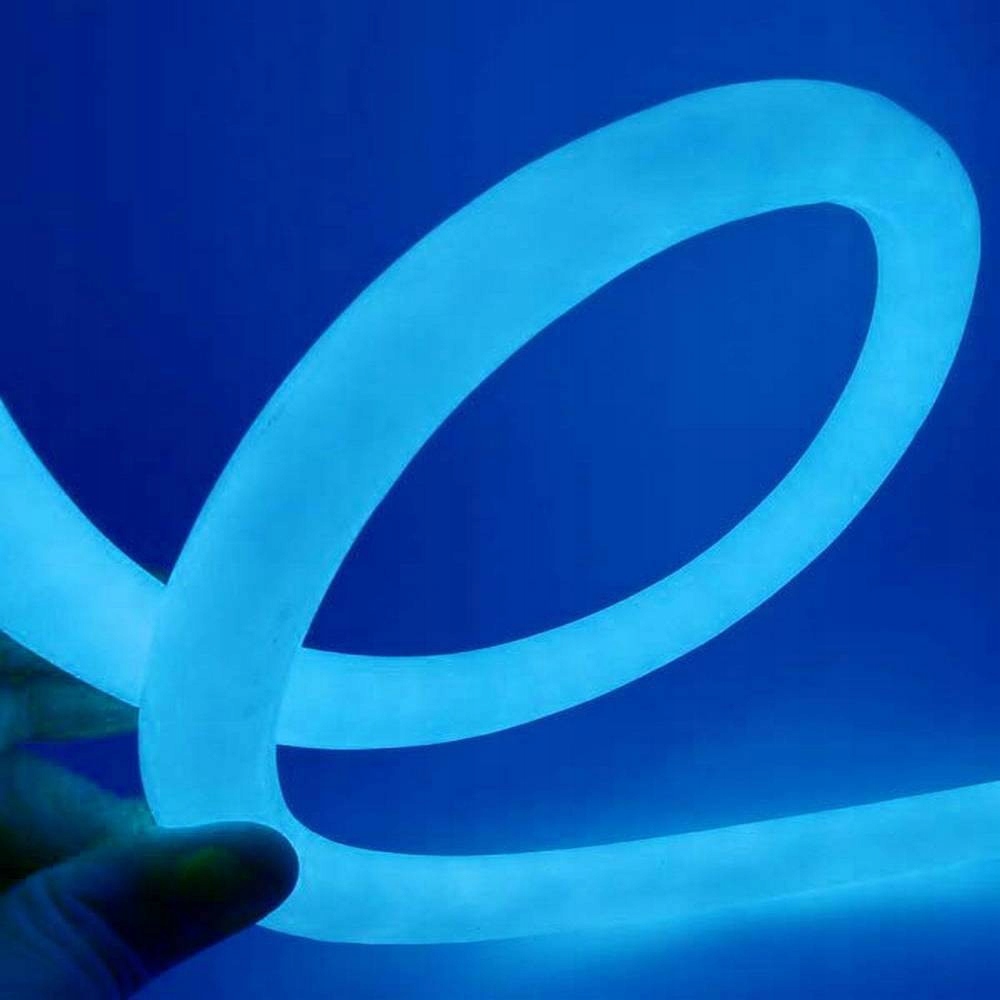 Neon Flex LED 230V niebieski 360° to elastyczny wąż świetlny o mocy 8W/mb. Świeci dookoła, dlatego daje równomierną linię światła w pełnym zakresie 360°. Sprzedajemy go na metry, więc kupujesz dokładnie tyle, ile potrzebujesz.