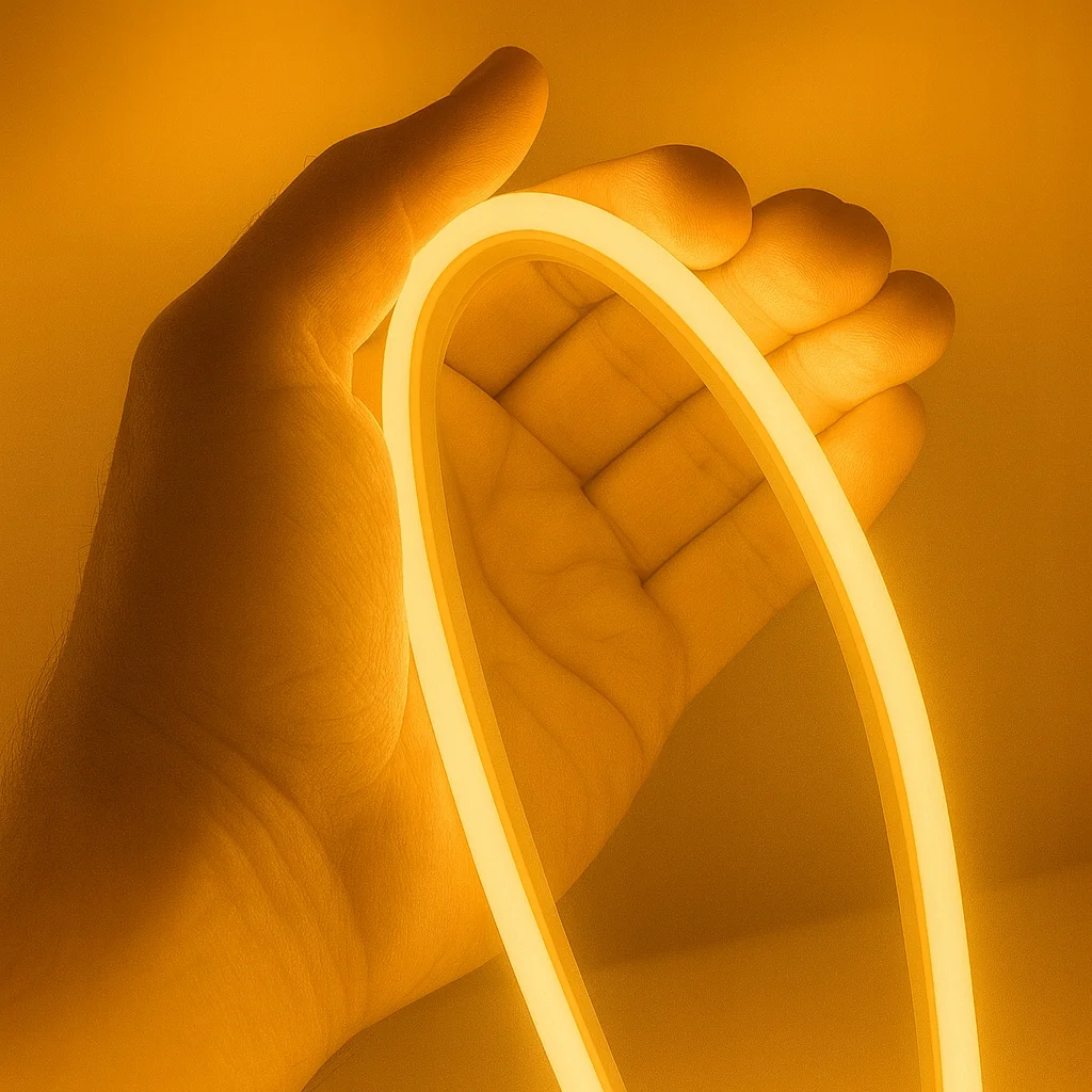 Producent zastosował diody SMD 2835 w gęstości 240 LED na metr, dlatego neon świeci bardzo równomiernie. Co więcej, mleczna powłoka rozprasza światło, więc powstaje gładka linia bez przerw.