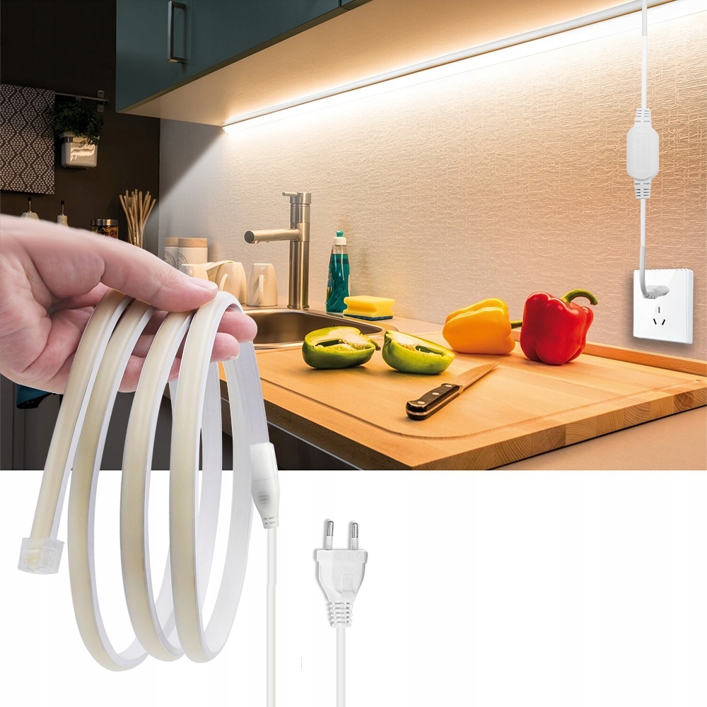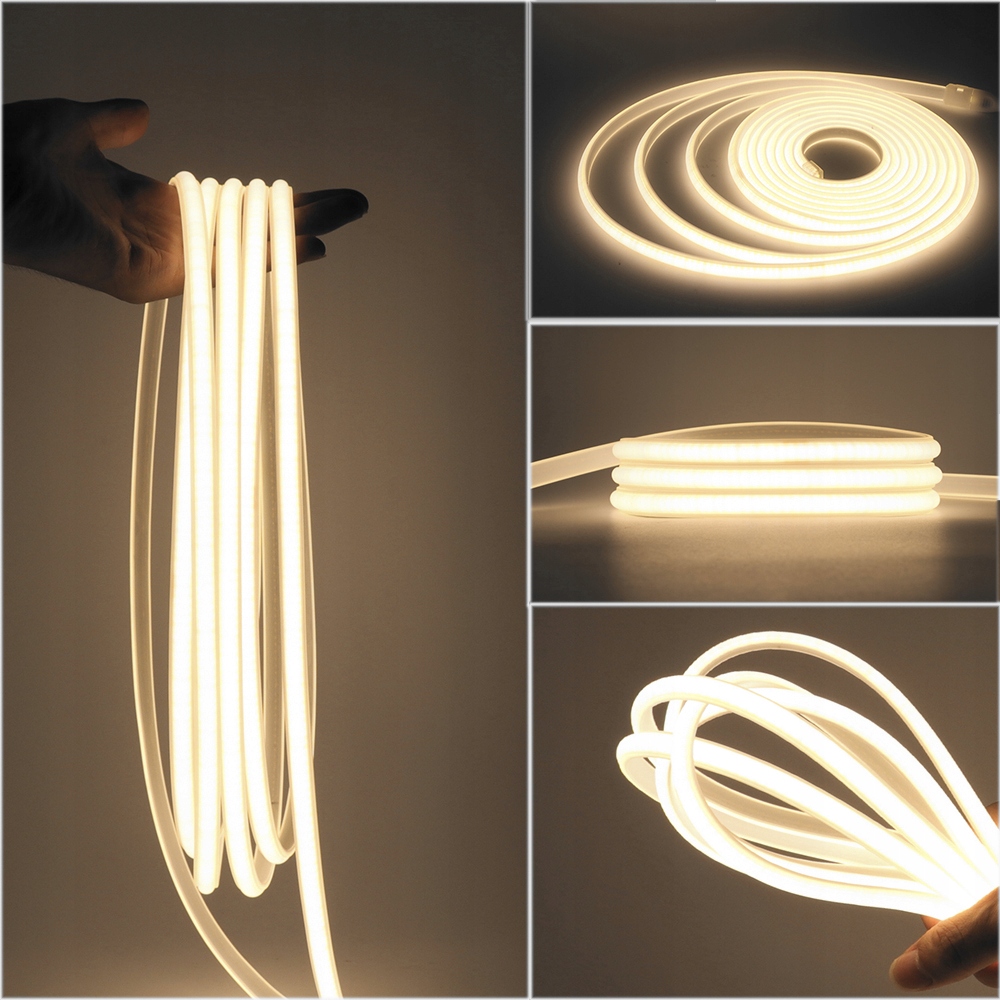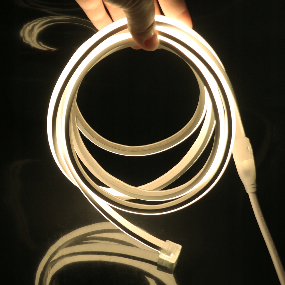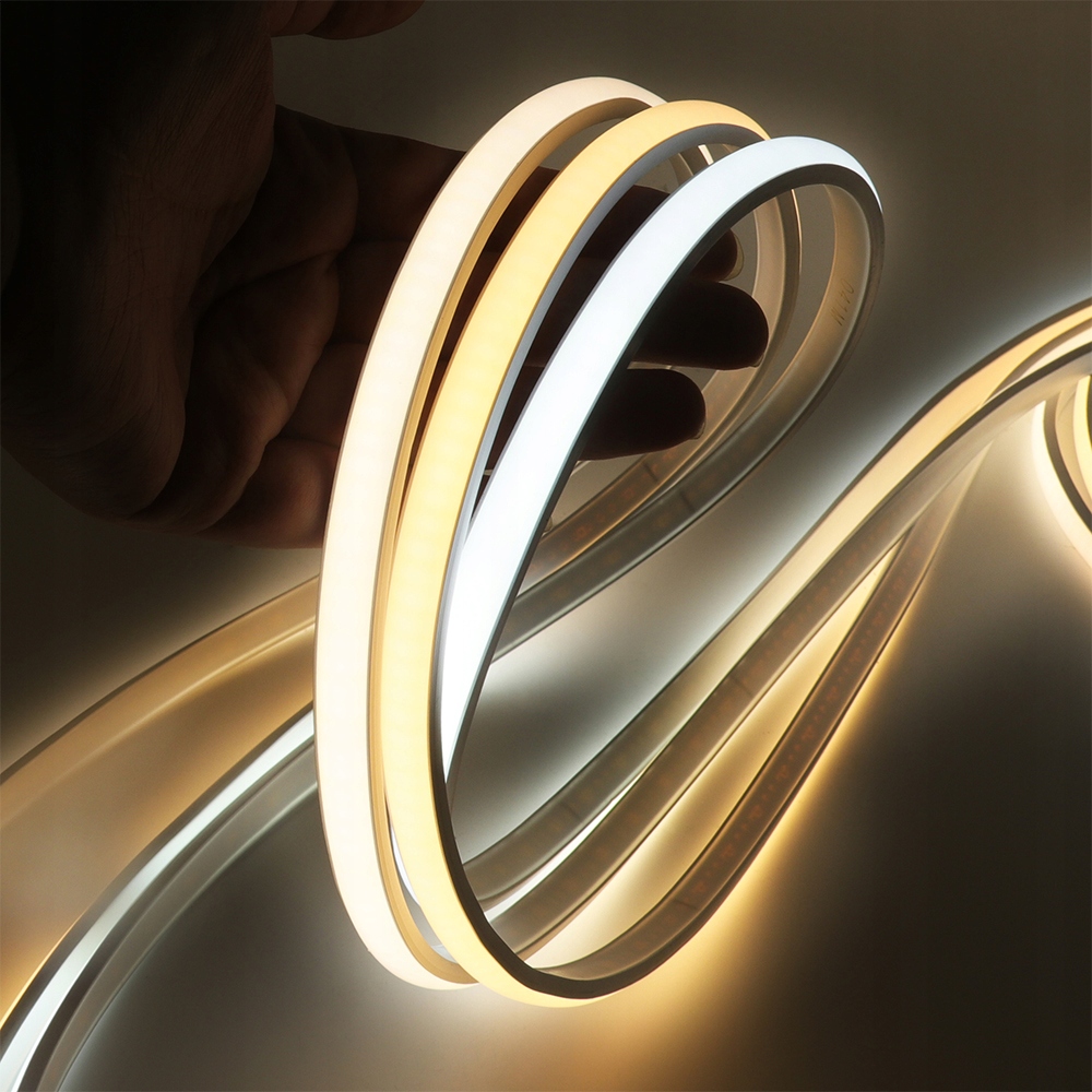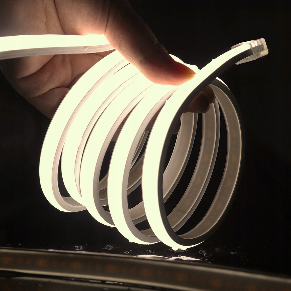 Neon LED COB 230V 13W/m w barwie białej neutralnej to najnowsza generacja neonów flex. Dzięki technologii COB uzyskujesz całkowicie jednolitą linię światła, dlatego nie widać pojedynczych punktów LED. Model pracuje bezpośrednio na 230V, więc nie stosujesz zasilacza niskiego napięcia, a montaż jest prostszy.
