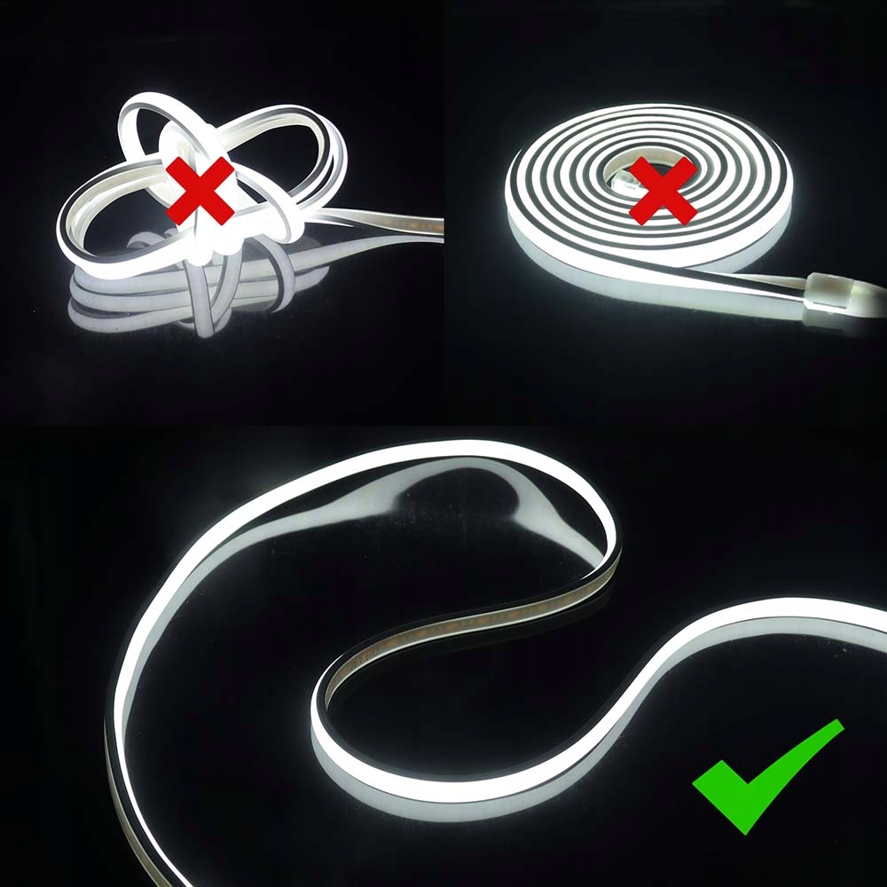 Neon LED FLEX COB posiada około 305 diod COB na metr, dlatego świeci równomiernie nawet na całym odcinku 100 m. Światło nie traci mocy, a jednocześnie pozostaje stabilne na całej długości. Dzięki temu uzyskasz efekt zbliżony do klasycznego neonu, jednak przy znacznie lepszej wydajności LED.