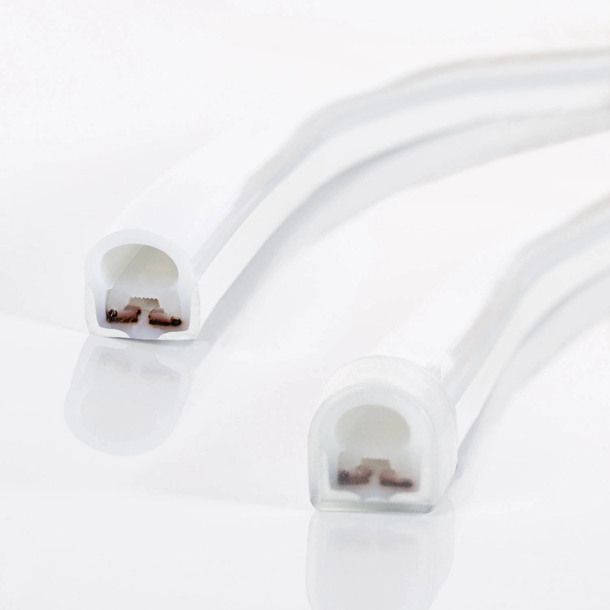Neon LED posiada półokrągły profil o wymiarach 17×16 mm. Dzięki temu emituje światło pod kątem 180°. Oświetlenie jest więc szerokie i równomierne.