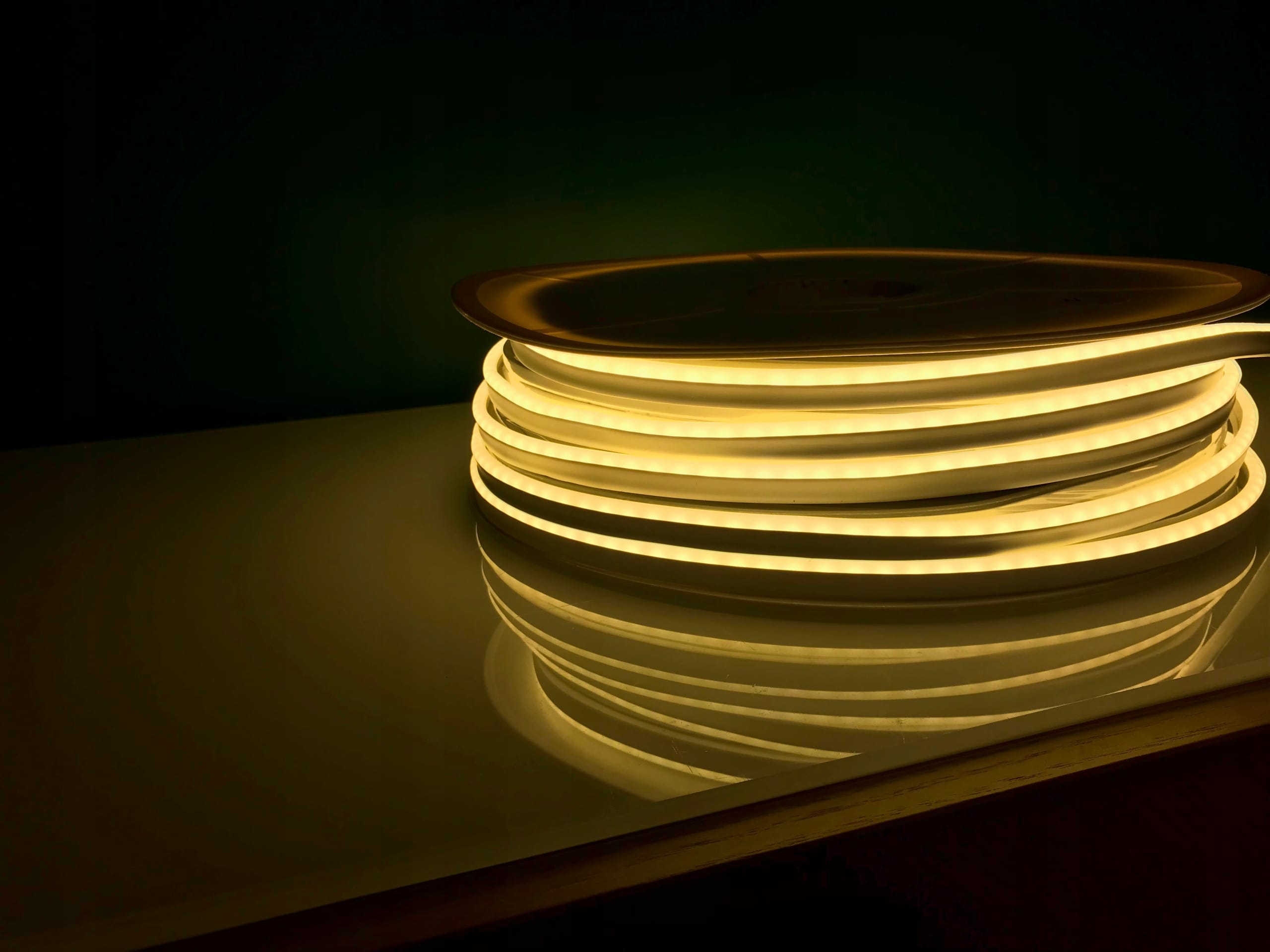 NEON FLEX LED 12V Biały Ciepły 3500K IP67 to profesjonalna linia światła o jednolitym świeceniu. Dzięki barwie 3500K uzyskujesz przyjemne, ciepłe światło, które podkreśla detale, a jednocześnie nie męczy wzroku. Elastyczny pancerz PCV w klasie IP67 chroni diody, więc neon możesz stosować na zewnątrz oraz wewnątrz.