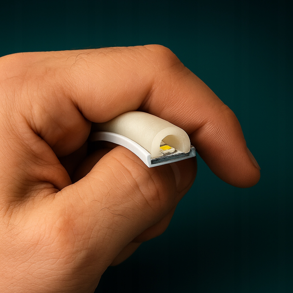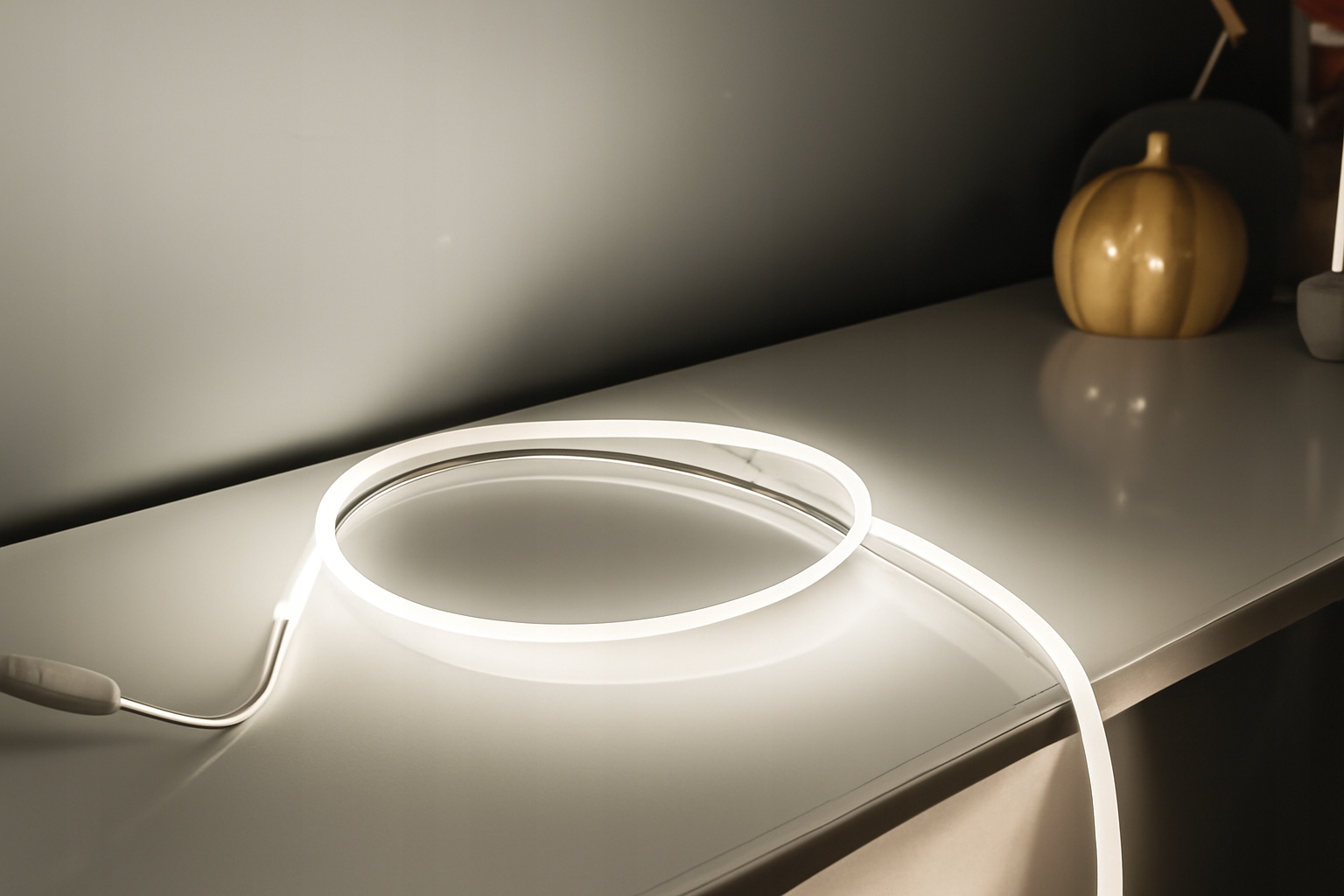 Neon LED posiada kompaktowy profil o wymiarach 7 × 10 mm. Dzięki temu instalacja jest dyskretna, a jednocześnie daje bardzo intensywne światło. Ponadto kąt świecenia 120° zapewnia równomierne rozproszenie światła.