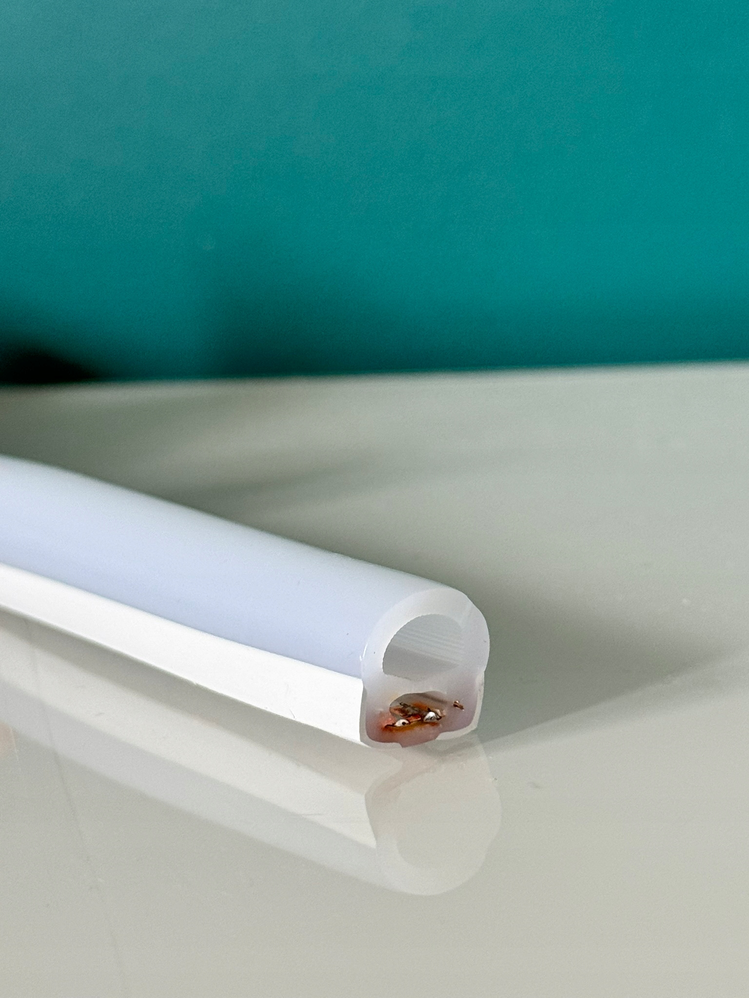 Neon LED posiada półokrągły profil o wymiarach 17×16 mm. Dzięki temu emituje światło pod kątem 180°. Oświetlenie jest więc szerokie i równomierne.