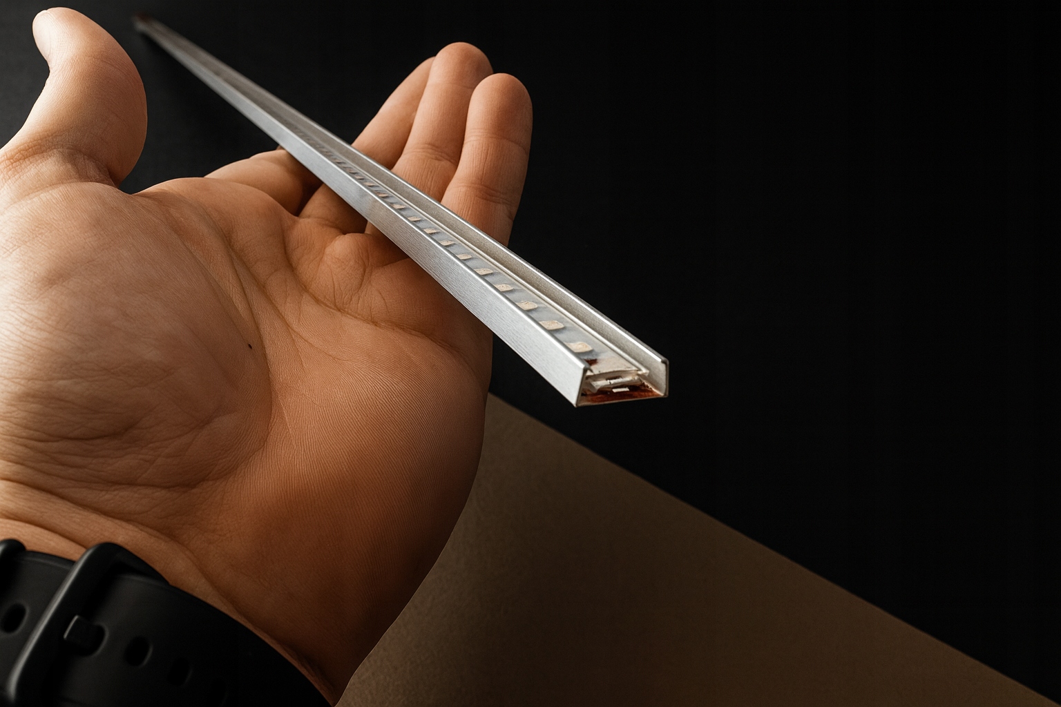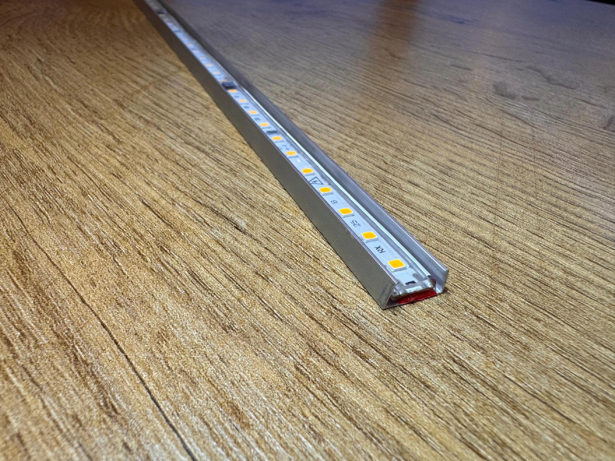 Listwa sprawdzi się w meblach, witrynach i sufitach, ponieważ ma kompaktowe wymiary. Wykonano ją z aluminium o grubości 0,4 mm, dlatego łączy lekkość z trwałością.