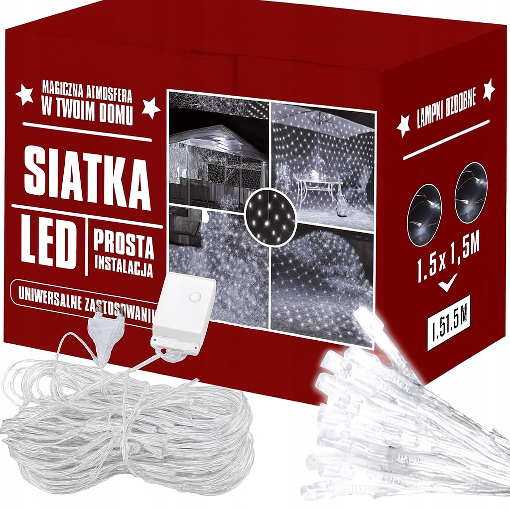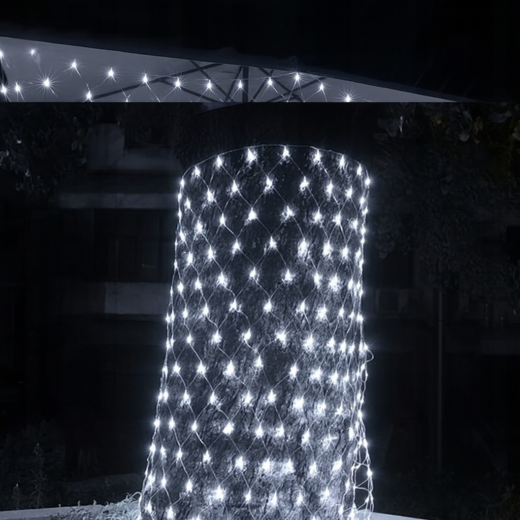 Siatka LED 1,5 x 1,5 m 100 LED Biała Zimna to szybki sposób na równą dekorację dużej powierzchni. Otrzymujesz gotową strukturę 1,5 x 1,5 m, więc nie musisz ręcznie rozciągać przewodów. 100 diod LED w barwie 6000K daje wyraźne, zimne światło, a jednocześnie podkreśla kontury przestrzeni.