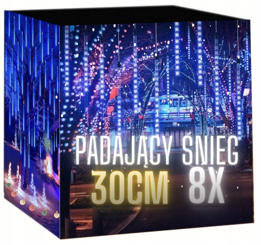 Komplet składa się z 8 tub LED o długości 30 cm każda. Każdy sopel zamontowany jest na mocnym, przezroczystym kablu, dlatego instalacja wygląda estetycznie. Dodatkowo hermetyczne złącza umożliwiają łączenie kilku zestawów w jedną długą instalację. Dzięki temu możesz łatwo dopasować długość dekoracji do swojej przestrzeni.