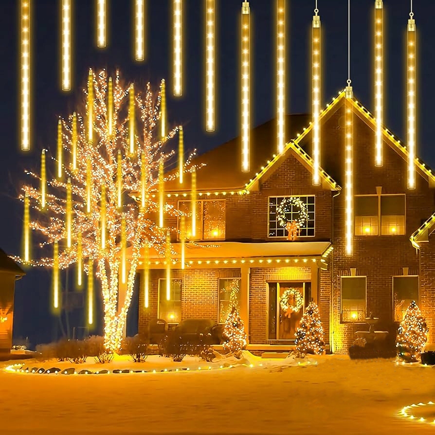 Sople LED spadający śnieg 80 cm w barwie ciepłej białej tworzą efekt spadających meteorytów, dlatego idealnie budują świąteczny klimat. Dzięki technologii LED światło jest intensywne, a jednocześnie energooszczędne. Co więcej, ciepła barwa nadaje przestrzeni przytulny i elegancki charakter.