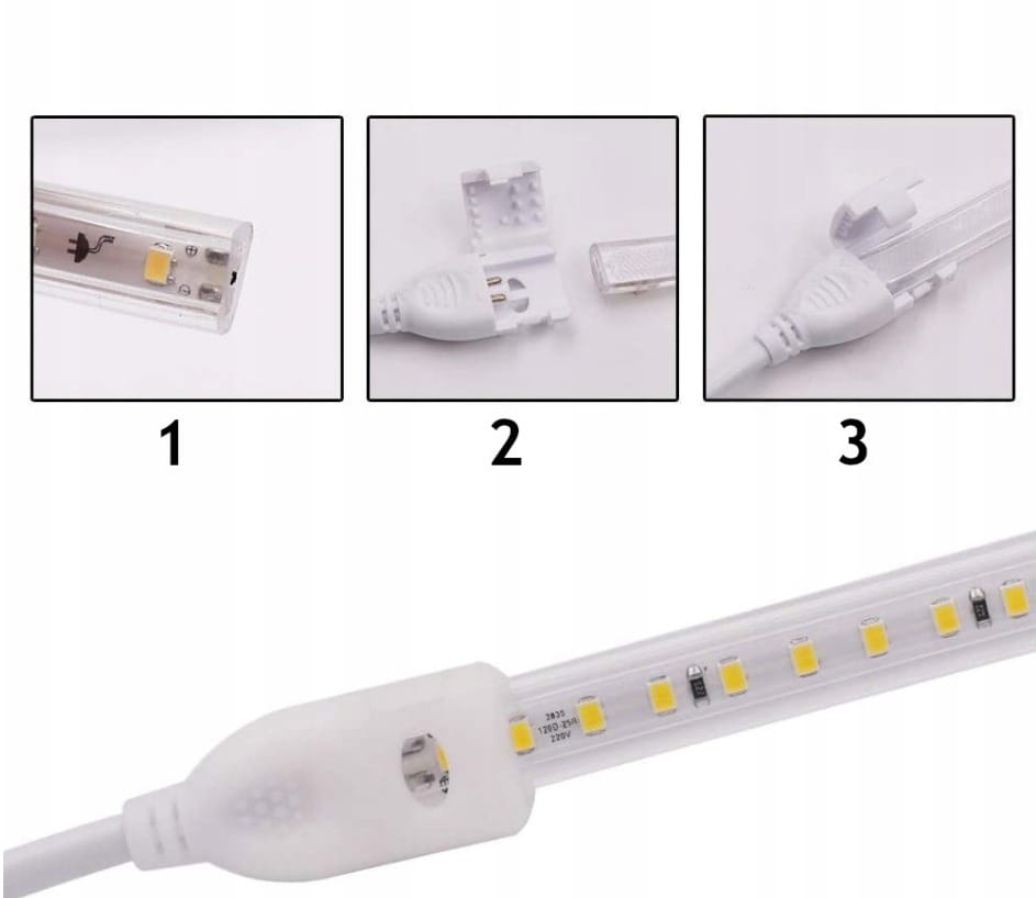 Stabilizator do taśmy LED COB na klik jest niezbędny do poprawnego podłączenia taśmy 230V. Dzięki wbudowanemu stabilizatorowi zapewnia bezpieczne i równomierne zasilanie. Co ważne, nie musisz stosować dodatkowych zasilaczy niskiego napięcia, ponieważ system działa bezpośrednio z sieci 220–240V.