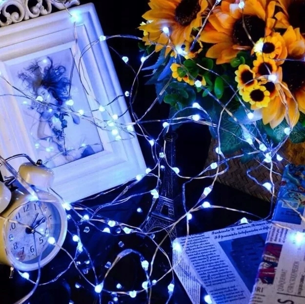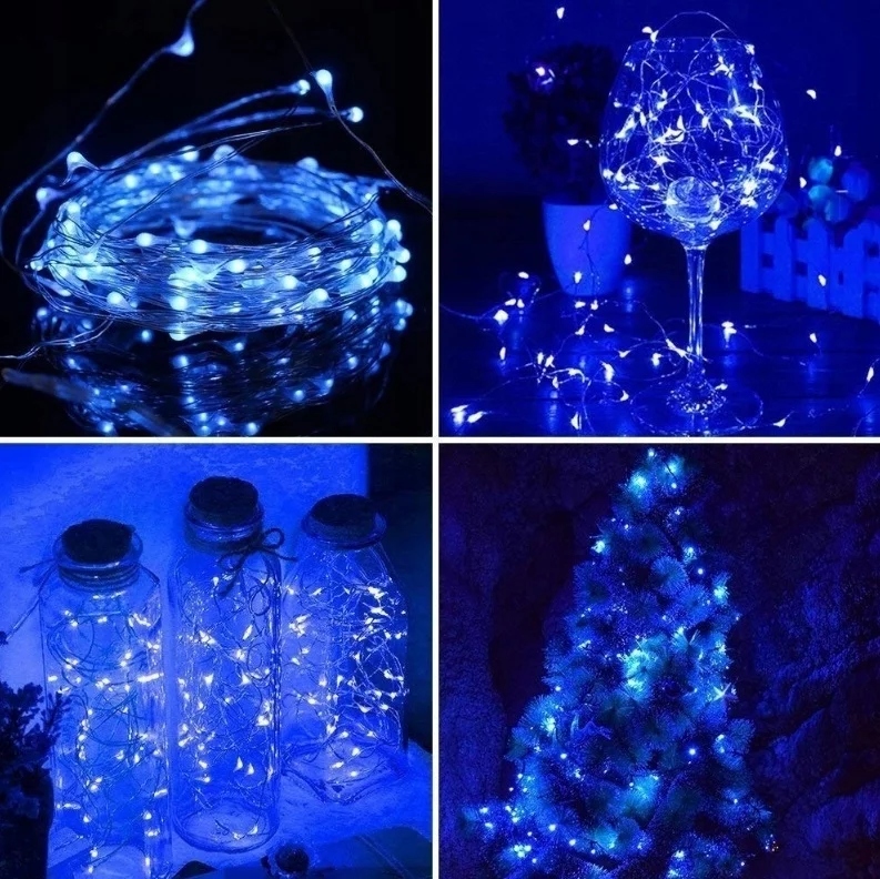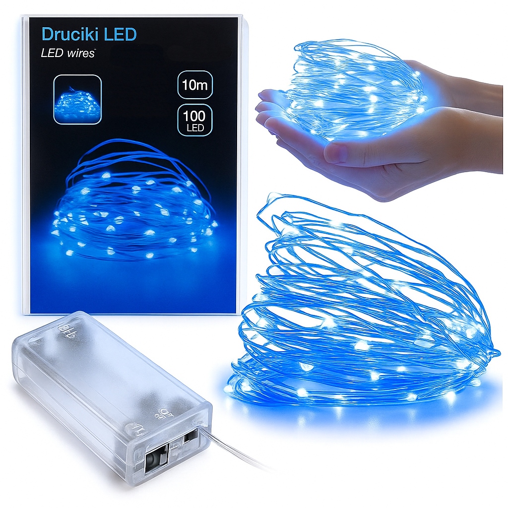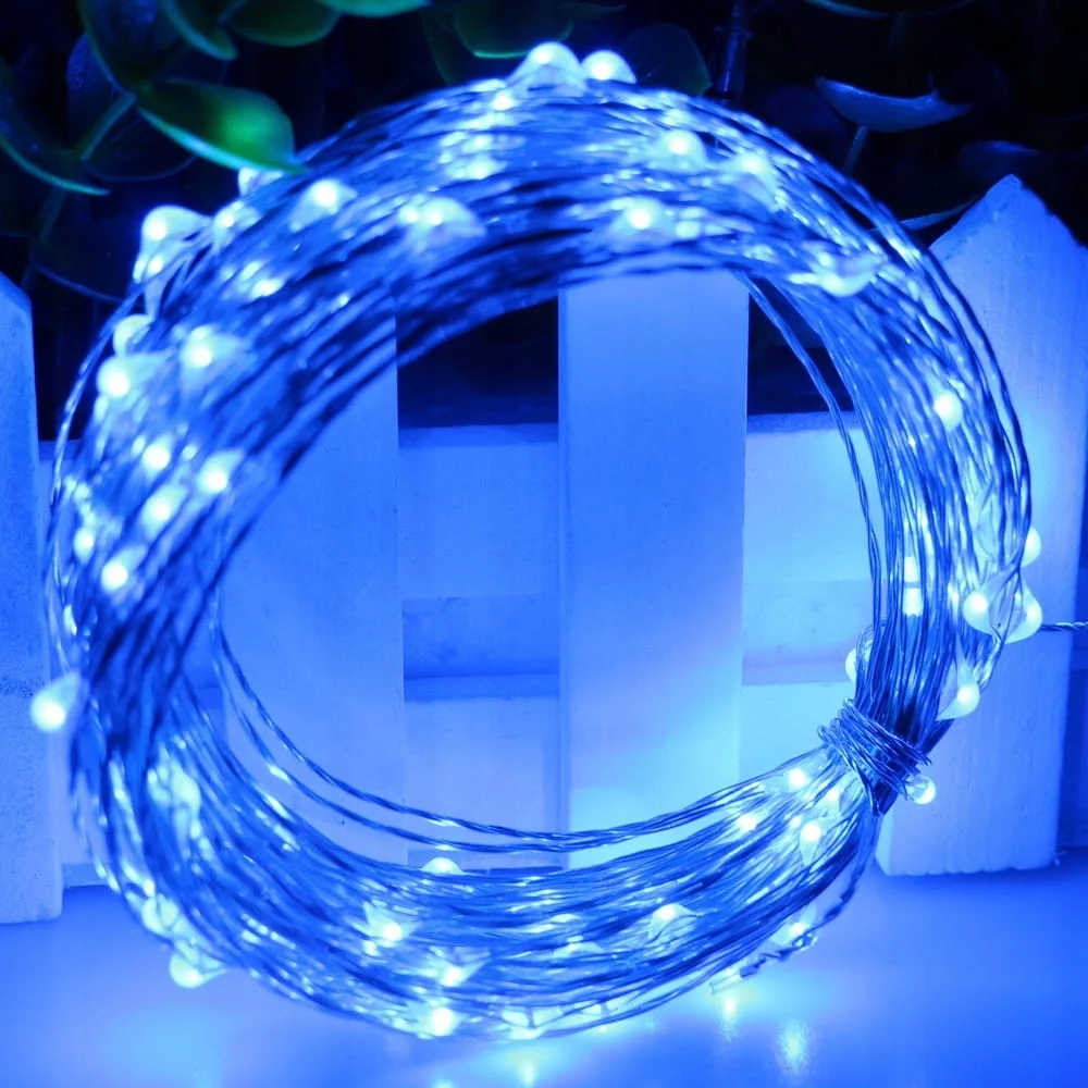 Lampki 100 LED Niebieskie 10 m na Druciku – Baterie