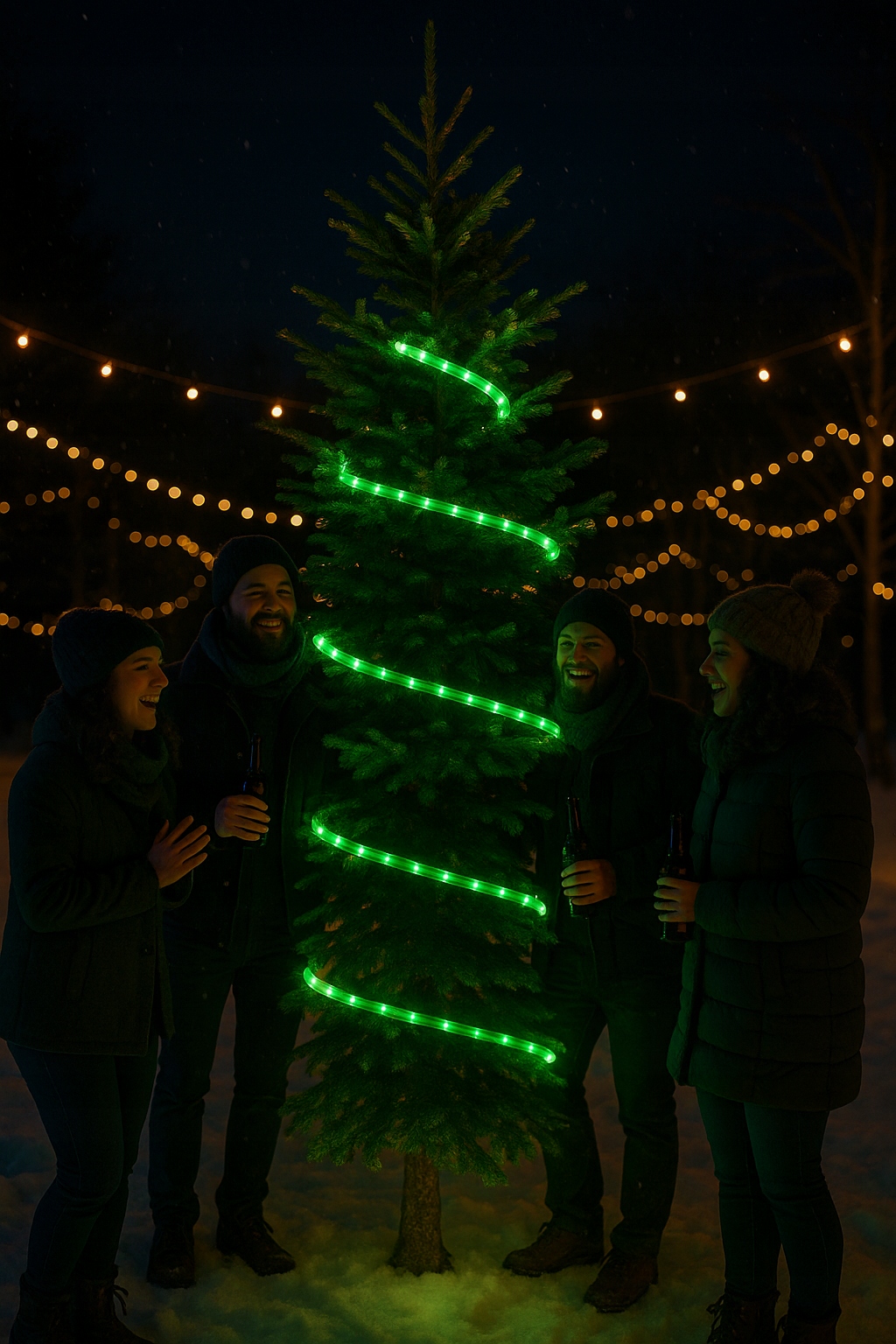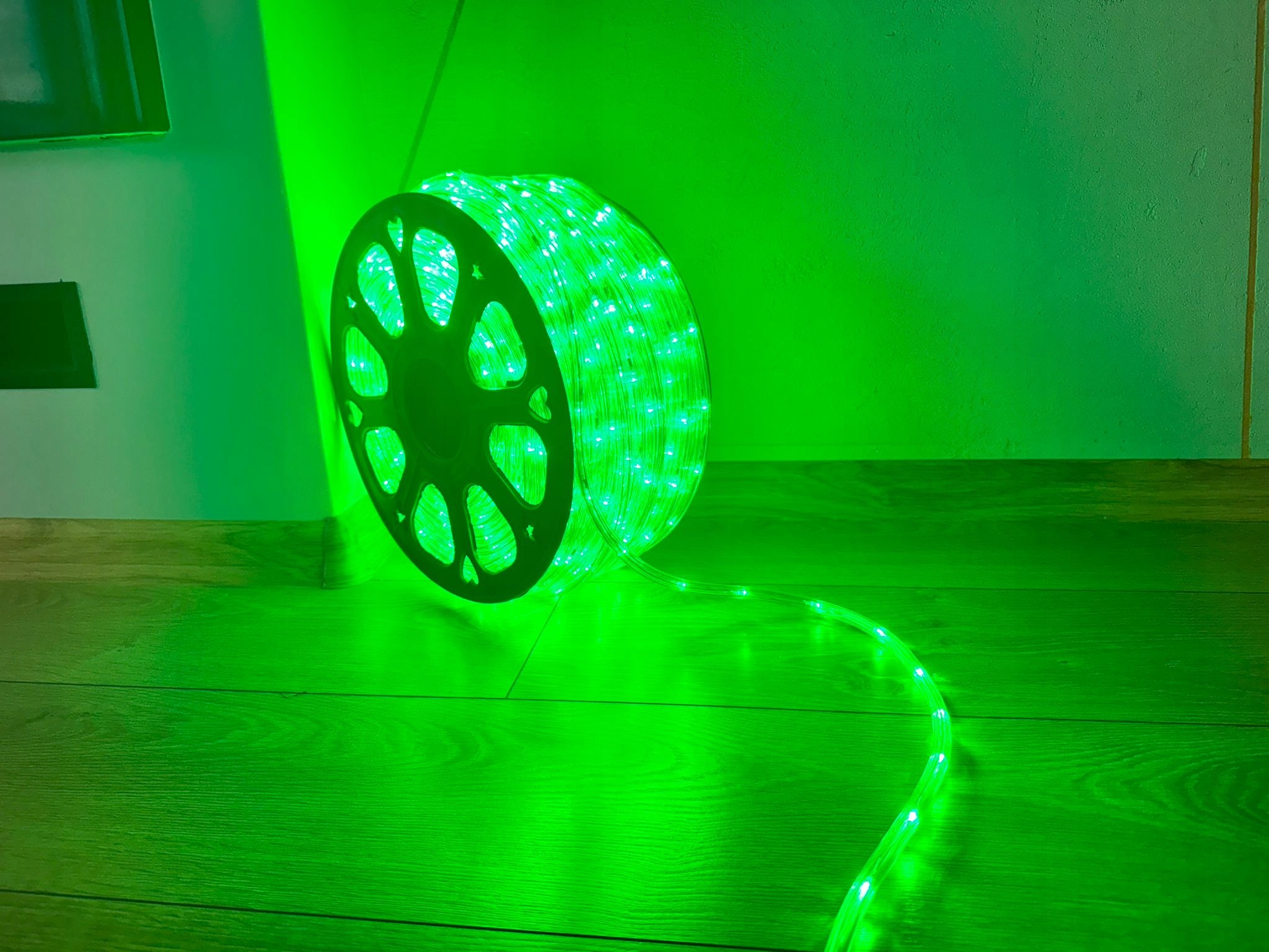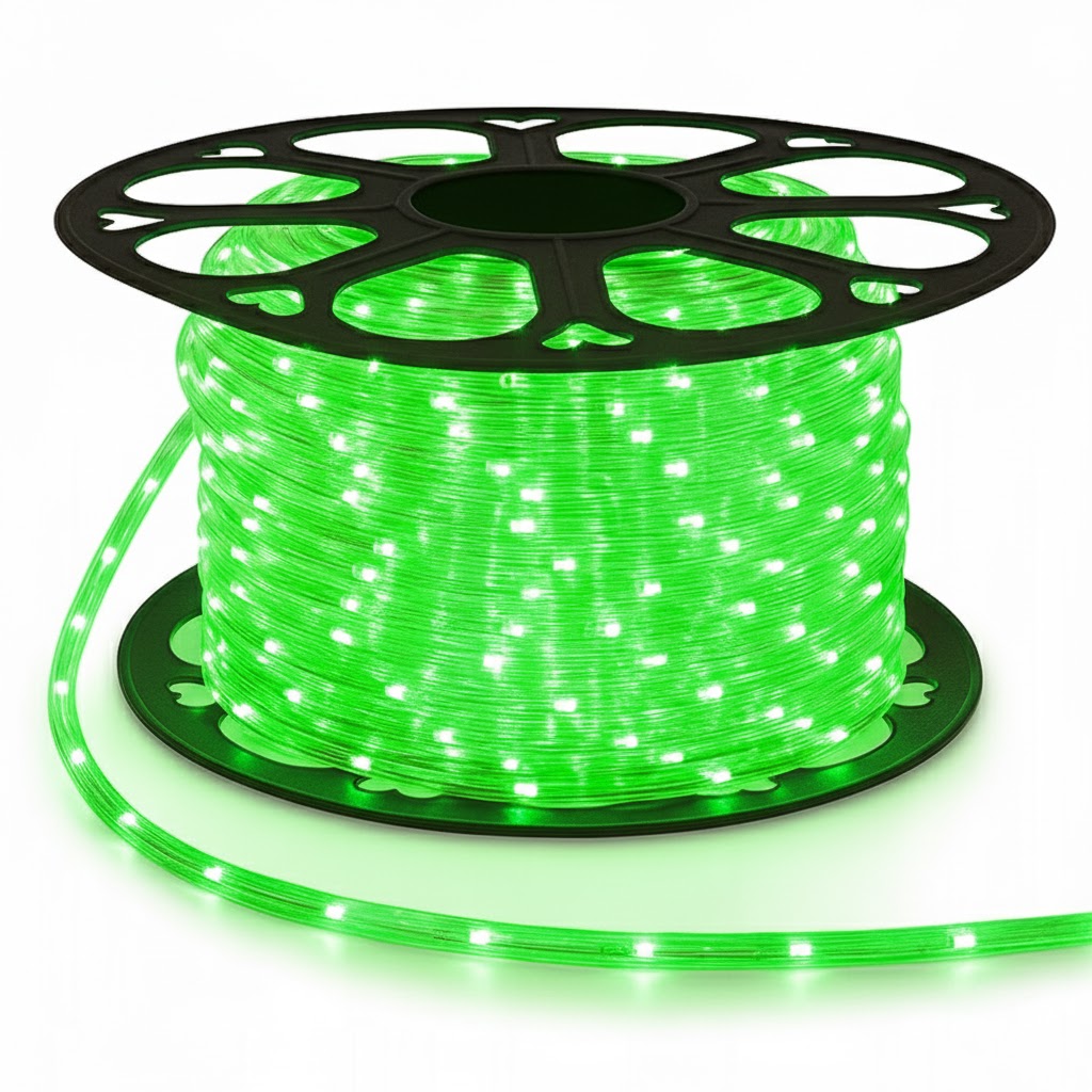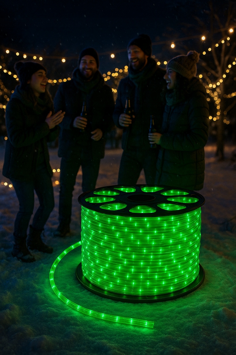 Świąteczny wąż świetlny LED w kolorze zielonym to trwałe i efektowne oświetlenie dekoracyjne do zastosowań zewnętrznych. Dzięki średnicy 10 mm oraz pełnemu świeceniu 360° światło rozchodzi się równomiernie na wszystkie strony. Dlatego dekoracja wygląda estetycznie zarówno z bliska, jak i z daleka.