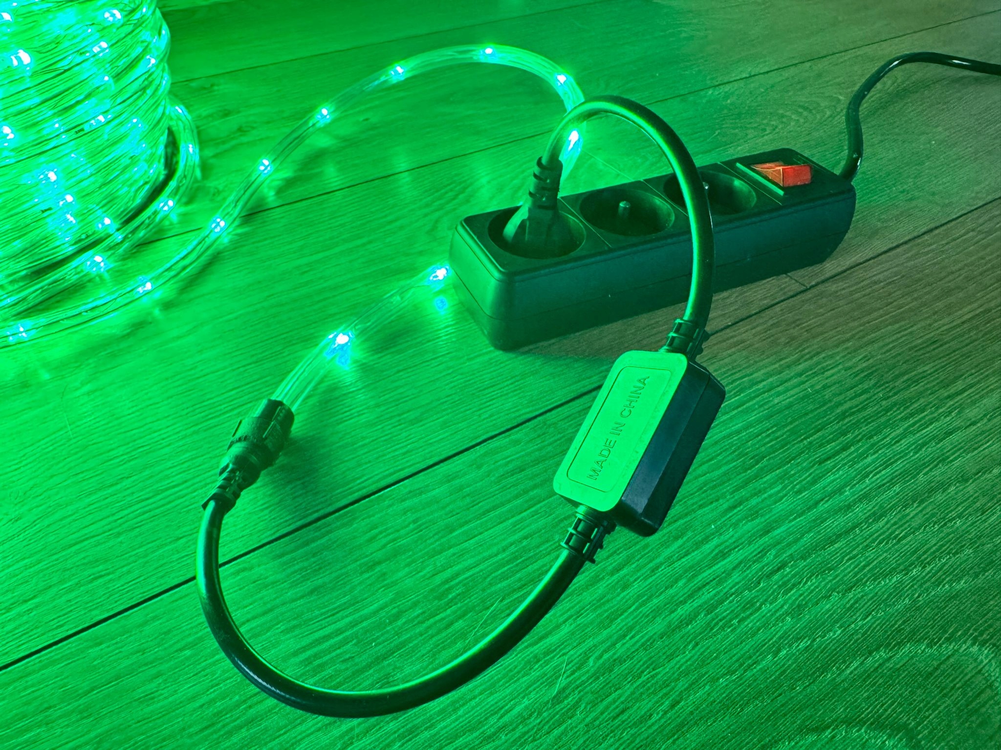 Wąż świetlny LED pobiera tylko około 2 W na metr. Dzięki temu jest energooszczędny i bezpieczny w codziennym użytkowaniu. Zasilanie bezpośrednio z sieci 230 V umożliwia tworzenie długich instalacji bez dodatkowych zasilaczy.