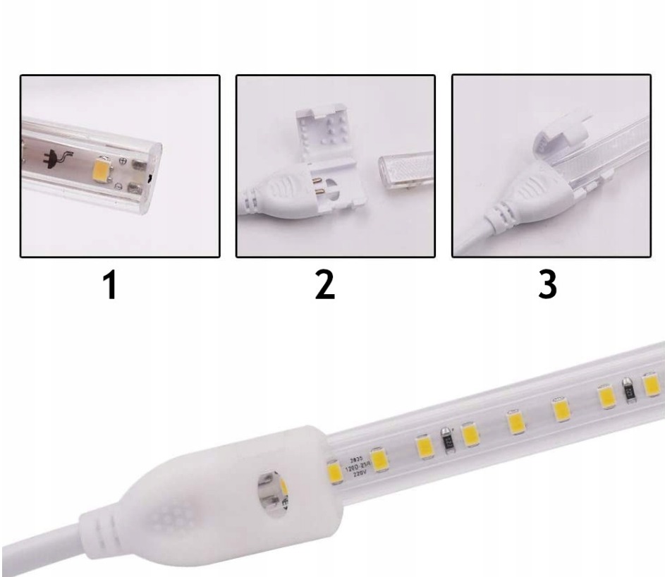 TAŚMA LED 230V 2835 BIAŁY ZIMNY CIĘTA CO 20 CM KLIK