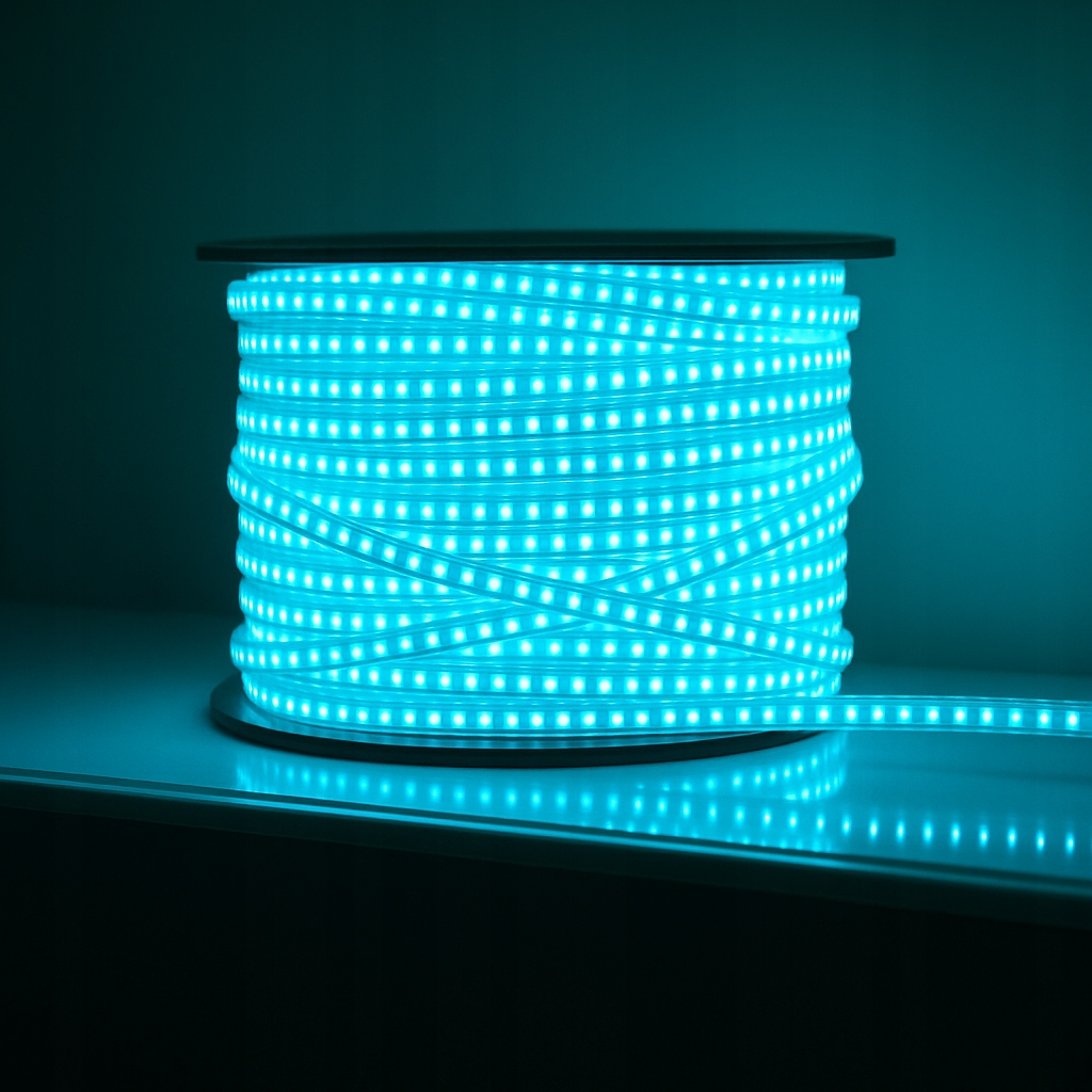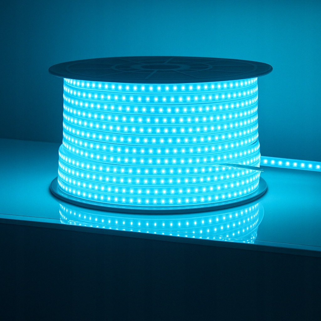Taśma LED 230V 2835 Ice Blue to profesjonalne oświetlenie dekoracyjne oraz użytkowe. Zasilasz ją bezpośrednio z sieci 230V, więc nie potrzebujesz klasycznego zasilacza 12V. Dzięki temu montaż jest szybki, a cała instalacja prostsza.