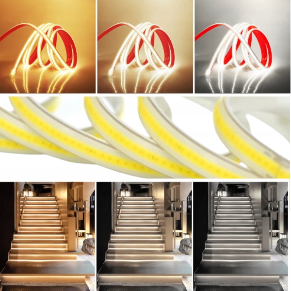 Taśma LED COB 24V biała zimna 6000K to nowoczesne i wydajne źródło światła przeznaczone do profesjonalnych instalacji oświetleniowych. Dzięki technologii COB emituje jednolitą linię światła, dlatego nie widać pojedynczych punktów LED. Dzięki temu instalacja wygląda estetycznie i bardzo nowocześnie.