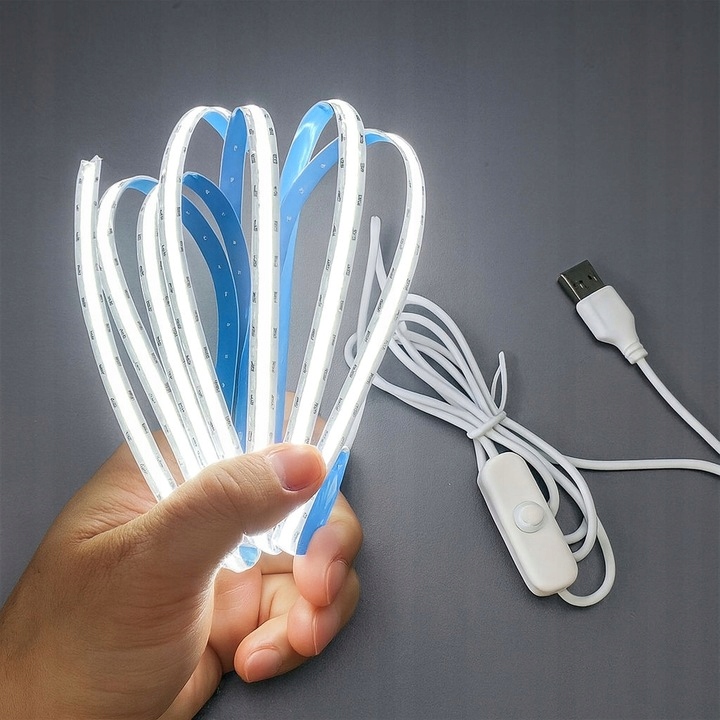 Taśma LED COB 2m USB 5V Biały Zimny z włącznikiem ON/OFF