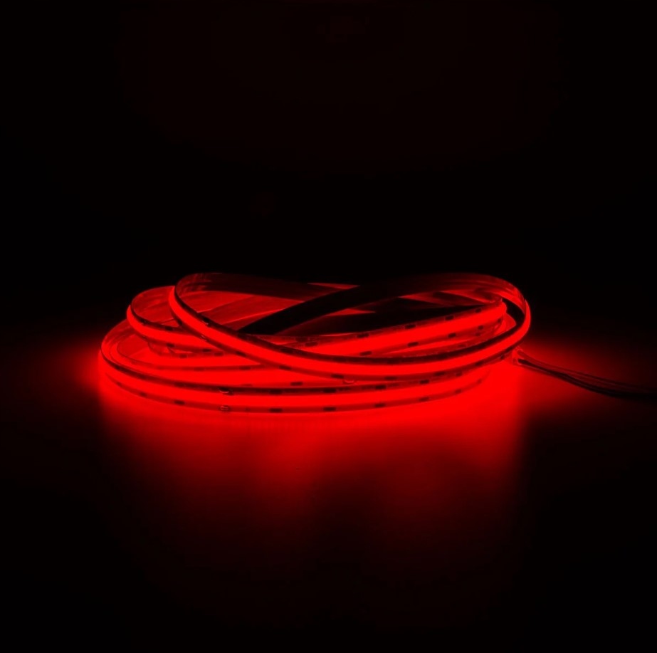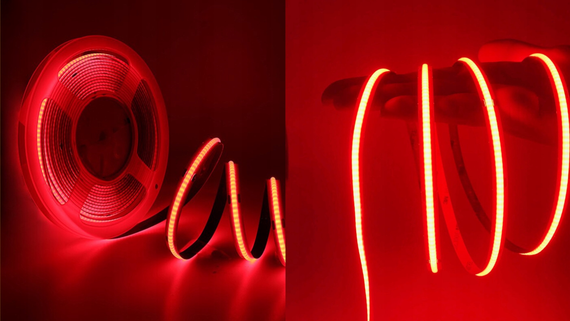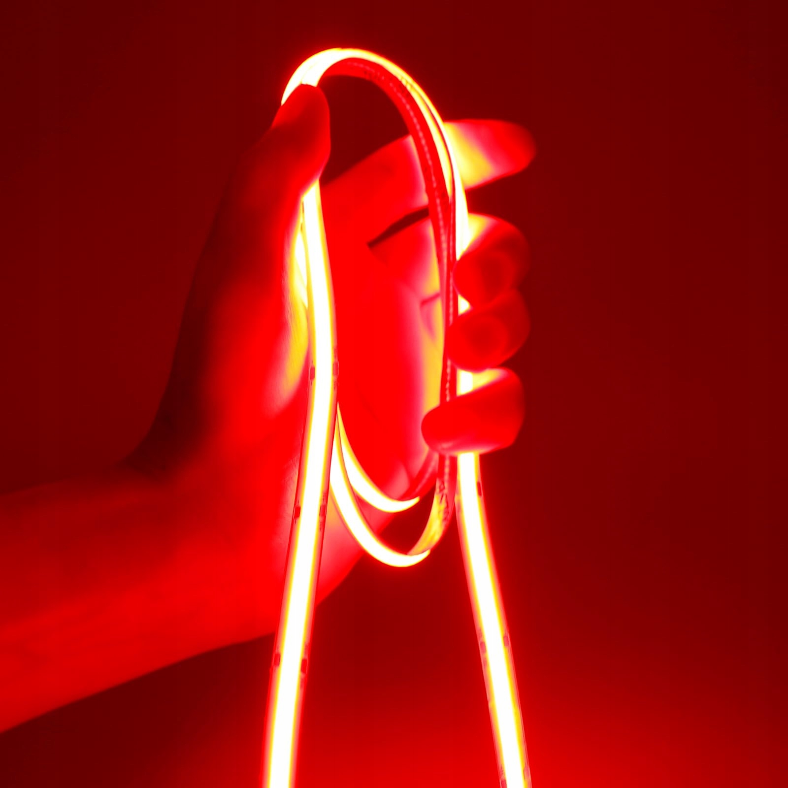 Taśma LED COB NEON RED 12V to profesjonalne oświetlenie LED tworzące idealnie jednolitą linię światła. Dzięki technologii COB diody są zagęszczone na całej długości taśmy. Dlatego światło jest gładkie i pozbawione widocznych punktów LED.